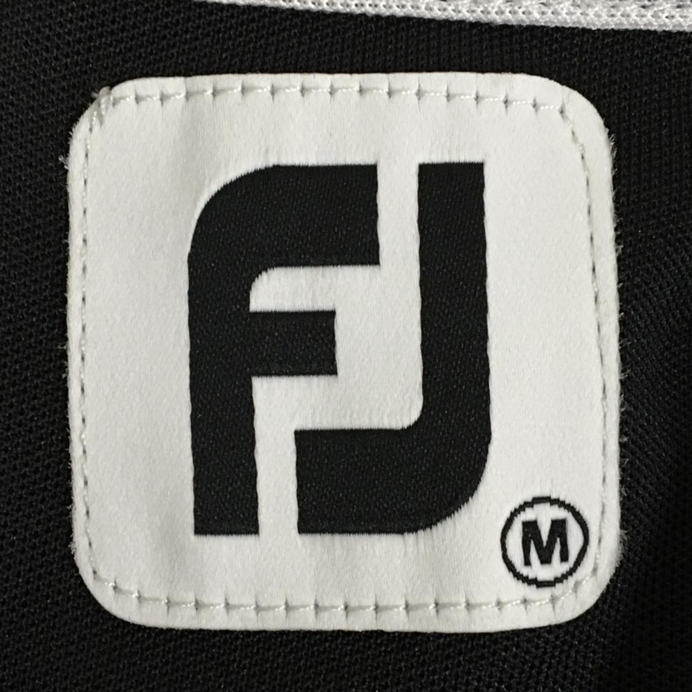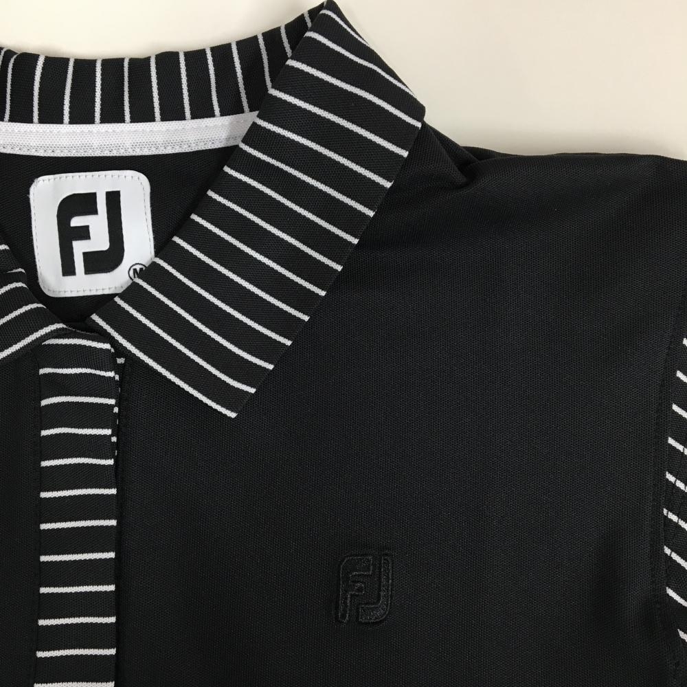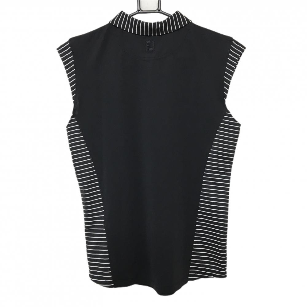 【超美品】フットジョイ ノースリーブポロシャツ 黒×白 一部ボーダー ロゴ刺しゅう ストレッチ レディース M ゴルフウェア FootJoy