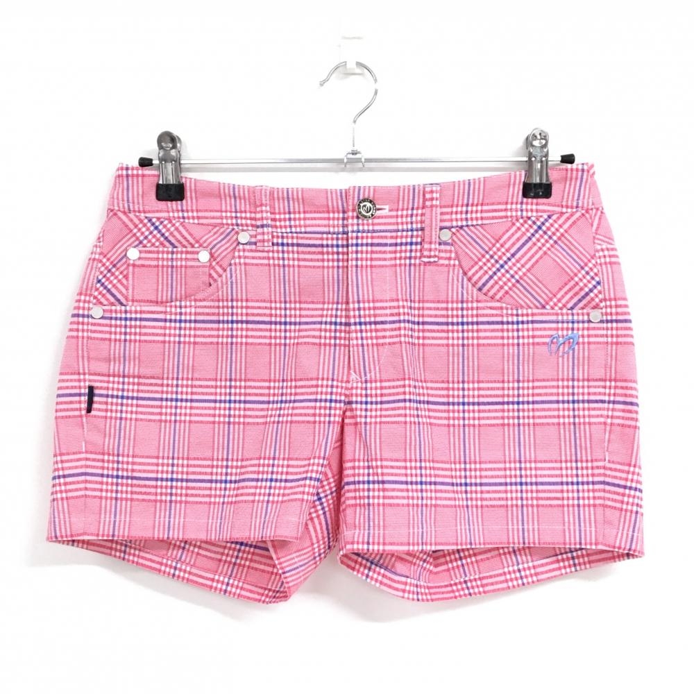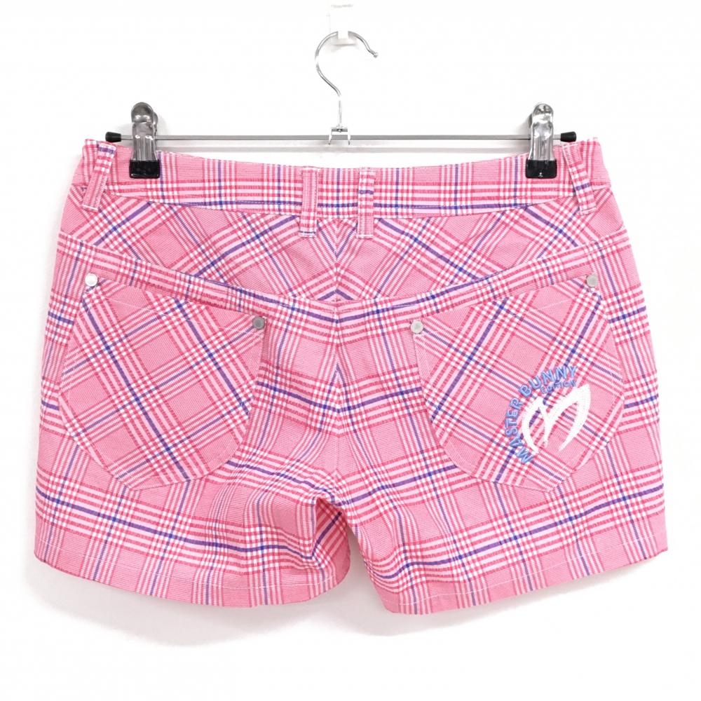 【超美品】マスターバニー ショートパンツ ピンク×白×ブルー チェック ロゴ刺しゅう レディース 1(M) ゴルフウェア MASTER BUNNY EDITION