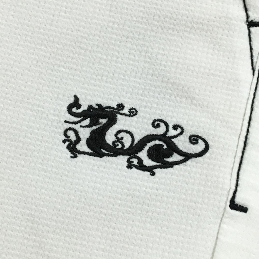 【美品】ダンスウィズドラゴン パンツ 白 地模様 ステッチ黒 レディース 1(S) ゴルフウェア Dance With Dragon
