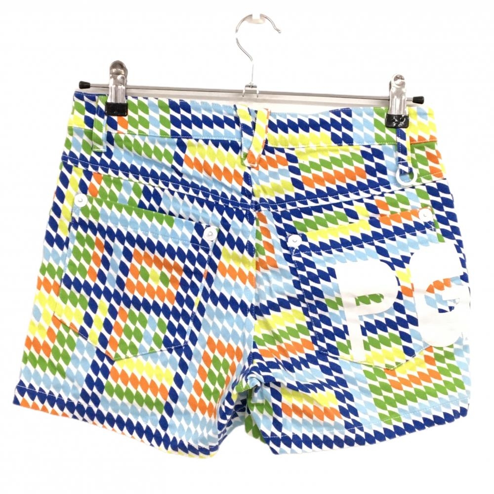 パーリーゲイツ ショートパンツ 白×ブルー系×グリーン系 総柄 ロゴ刺しゅう ストレッチ レディース 1(M) ゴルフウェア PEARLY GATES