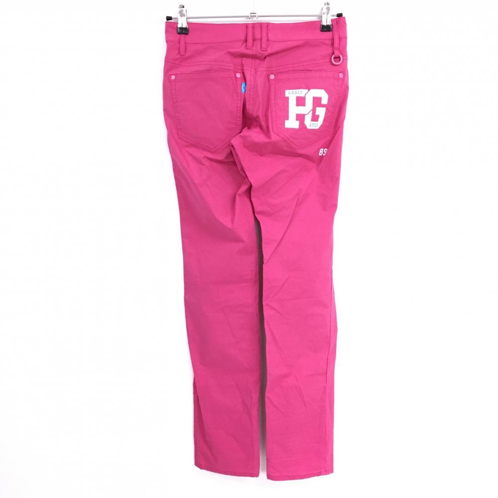 【美品】パーリーゲイツ パンツ ピンク×白 コットン混 ウエスト裏ニコちゃん スマイル レディース 0(S) ゴルフウェア PEARLY GATES