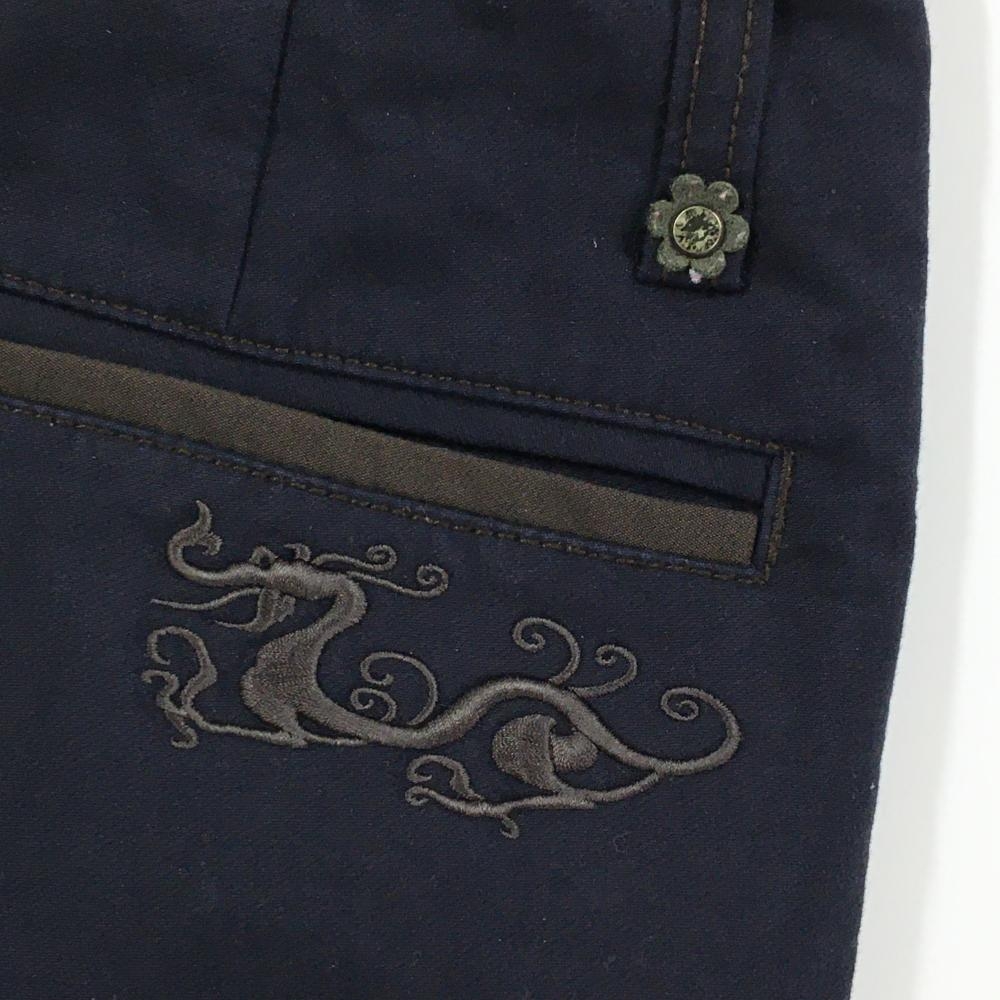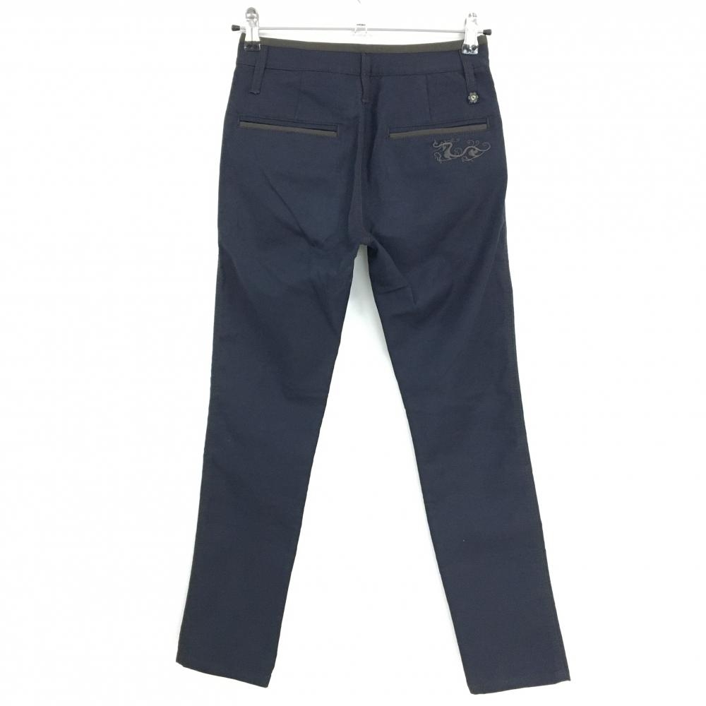 【美品】ダンスウィズドラゴン パンツ ダークネイビー ロゴ刺しゅう シンプル 花 レディース 1(S) ゴルフウェア Dance With Dragon