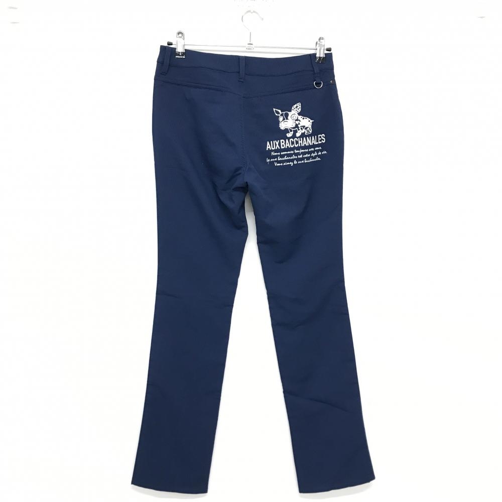 【美品】オーバカナル パンツ ネイビー 地模様 ヒップロゴ刺しゅう レディース O ゴルフウェア AUX BACCHANALES