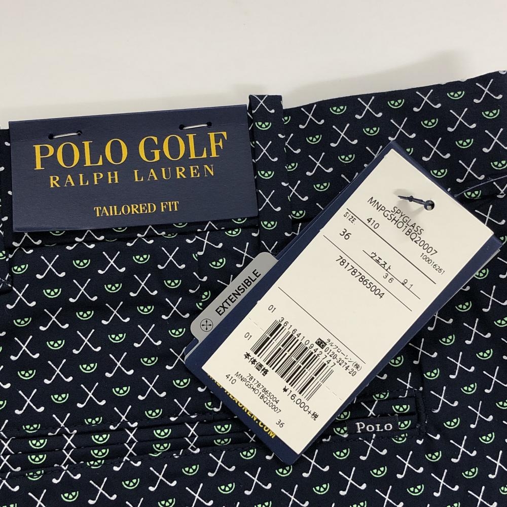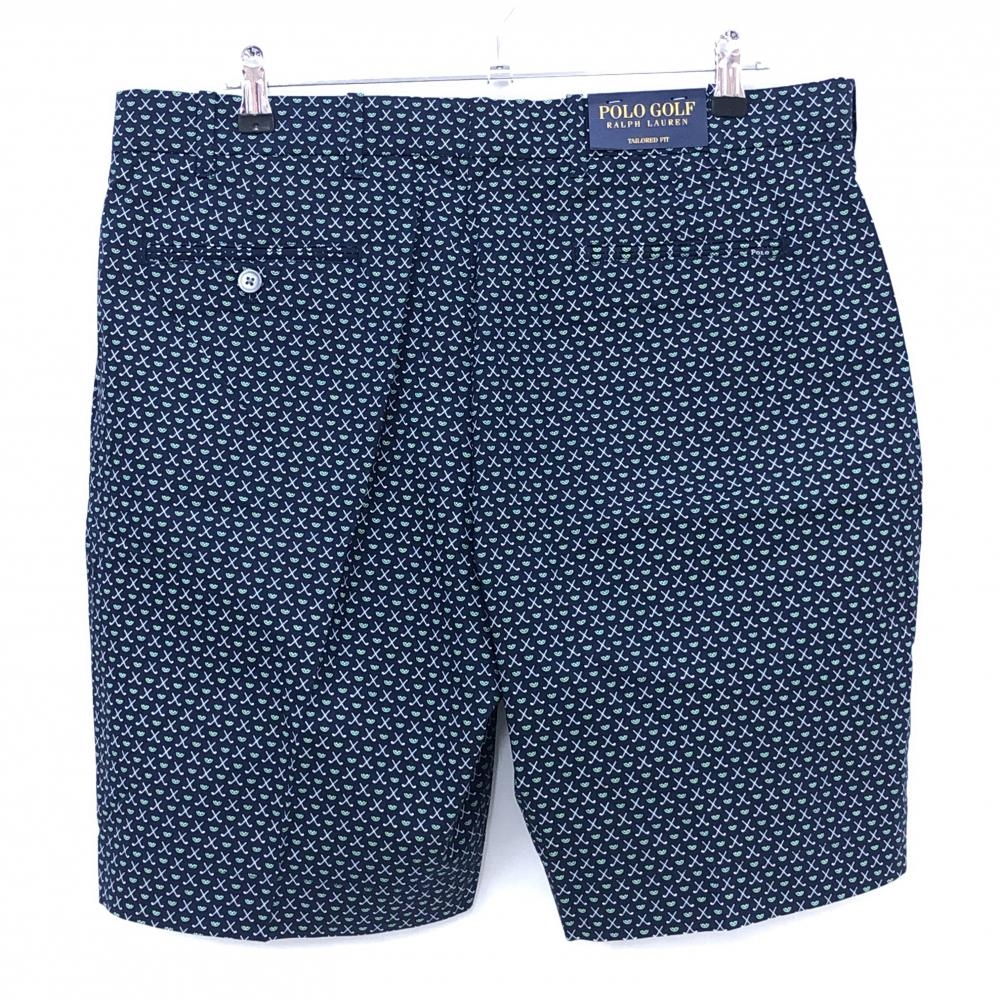 【新品】ポロゴルフ ハーフパンツ ネイビー×白×グリーン 総柄 メンズ 36 ゴルフウェア Ralph Lauren