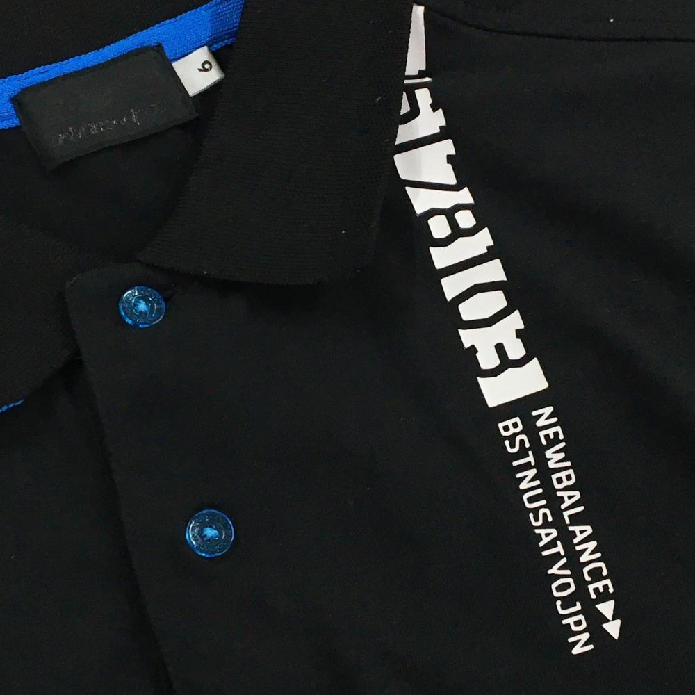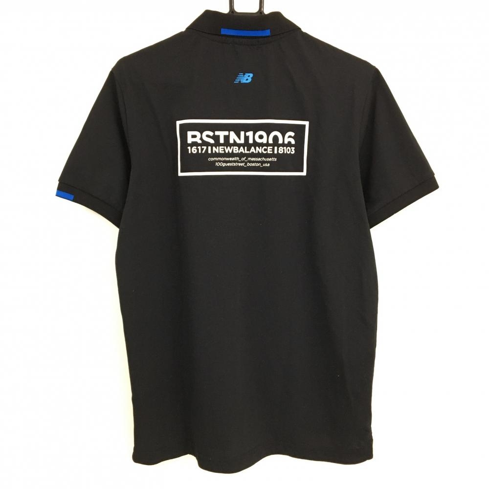 【美品】ニューバランスゴルフ 半袖ポロシャツ 黒×ブルー 背面ロゴ メンズ 6(XL) ゴルフウェア New Balance