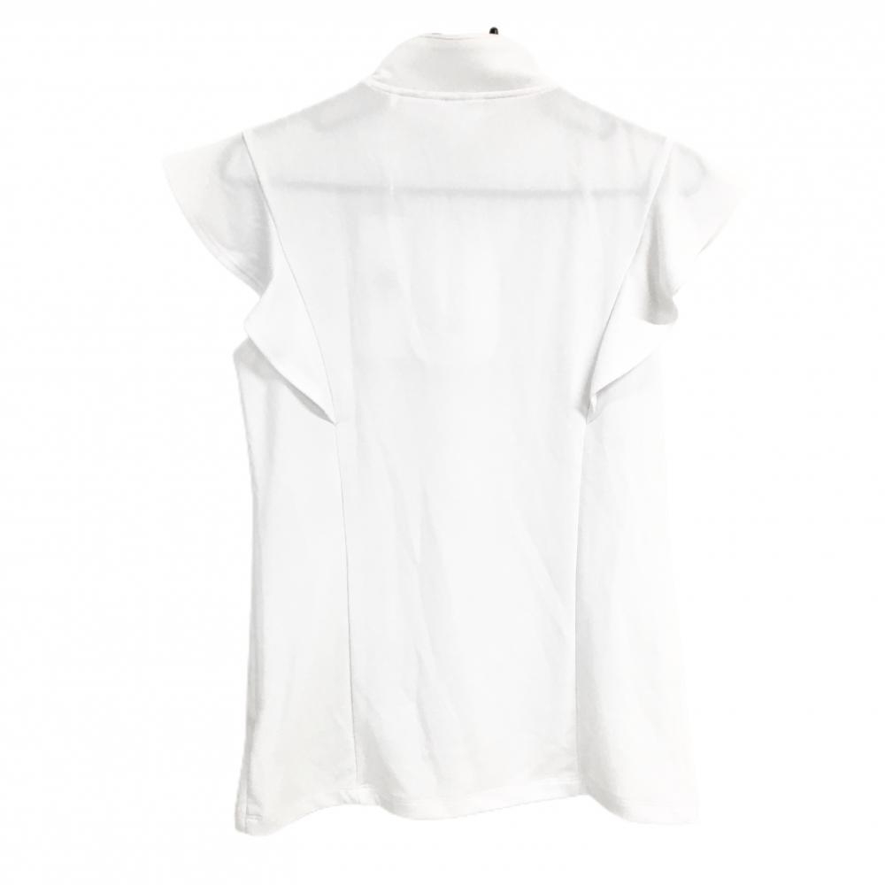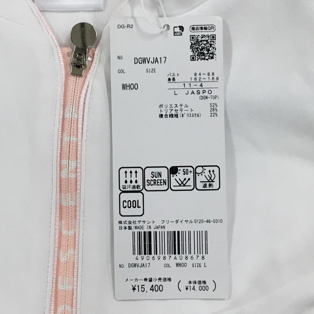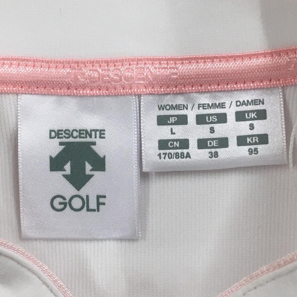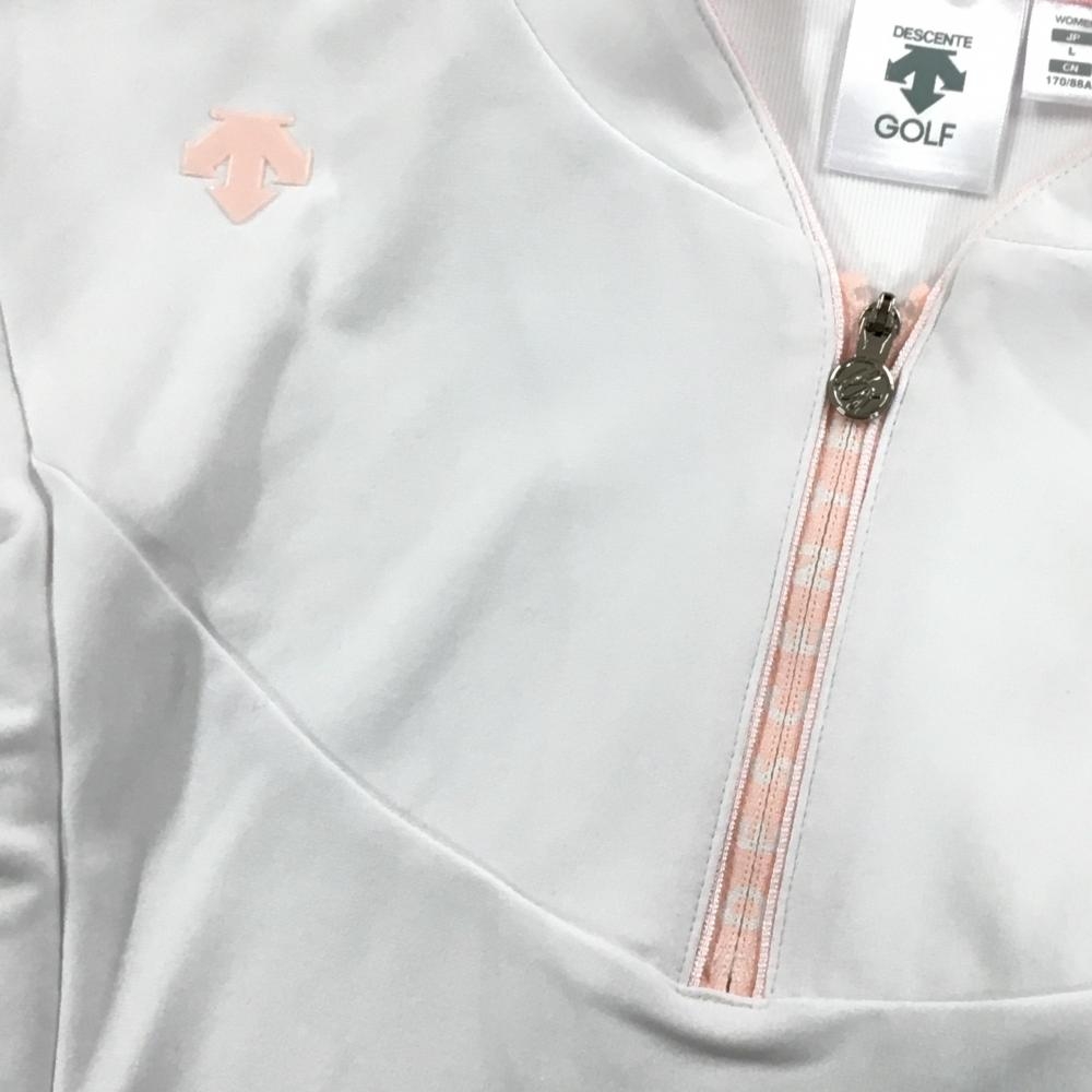 【新品】デサントゴルフ ノースリーブシャツ 白 袖フリル ハーフジップ 吸汗速乾 UVカット 遮熱 レディース L ゴルフウェア DESCENTE