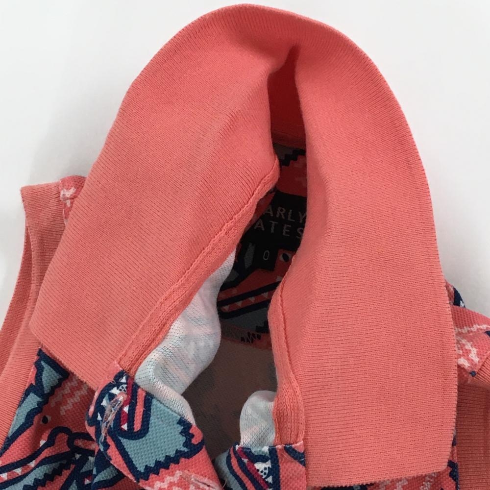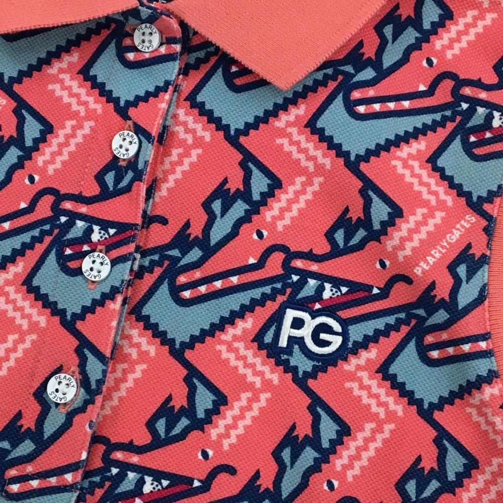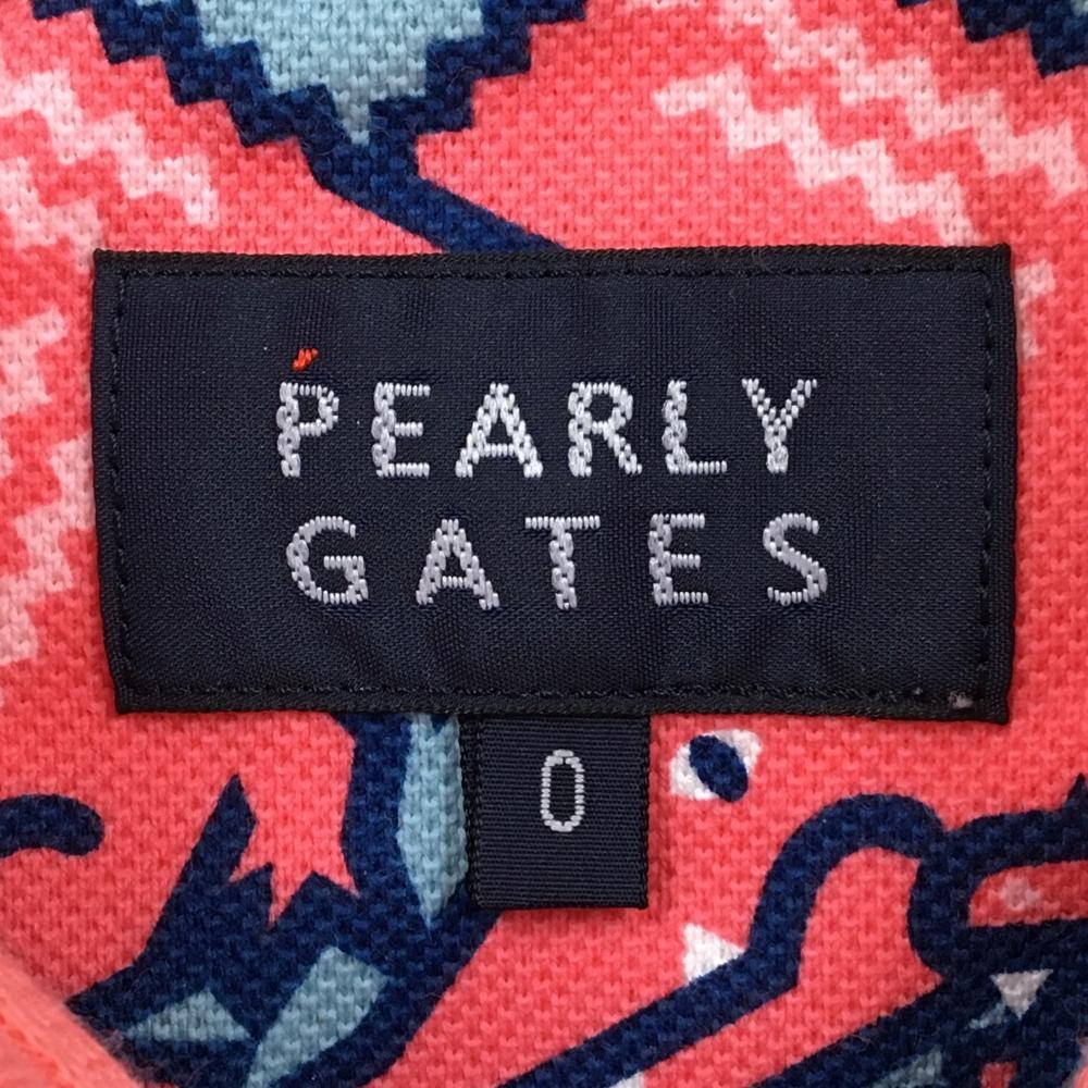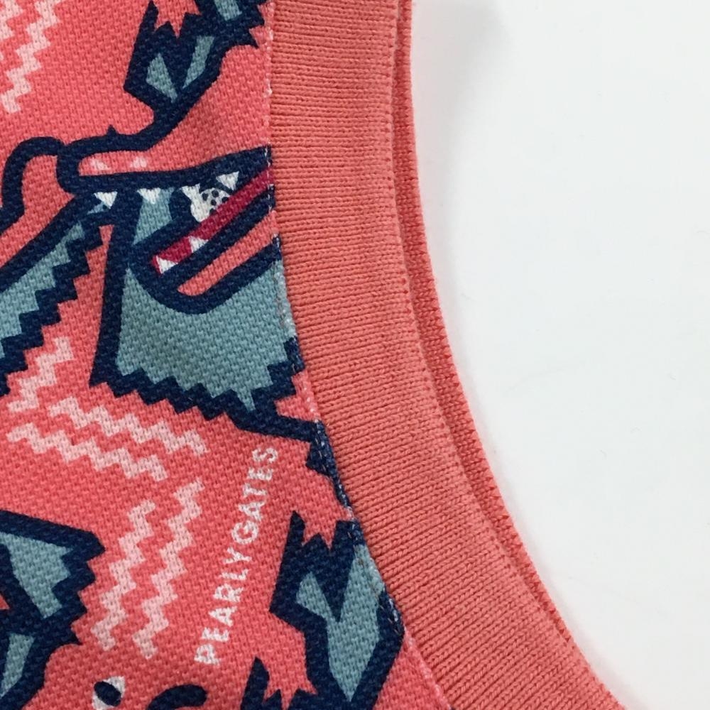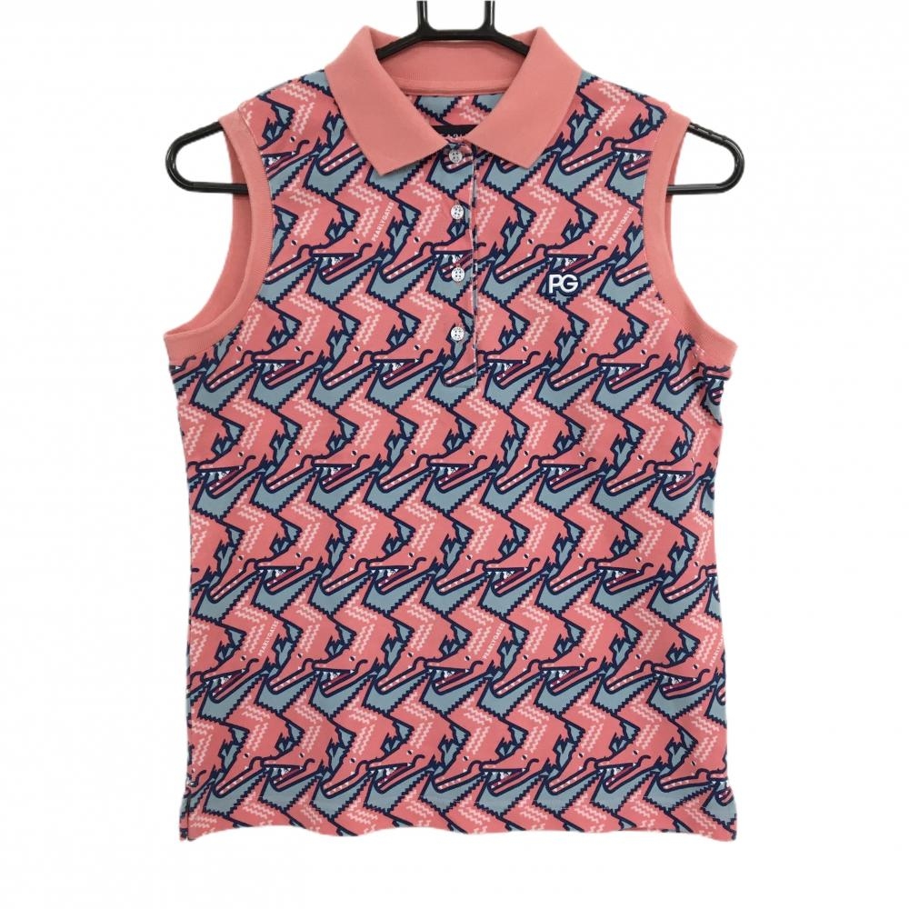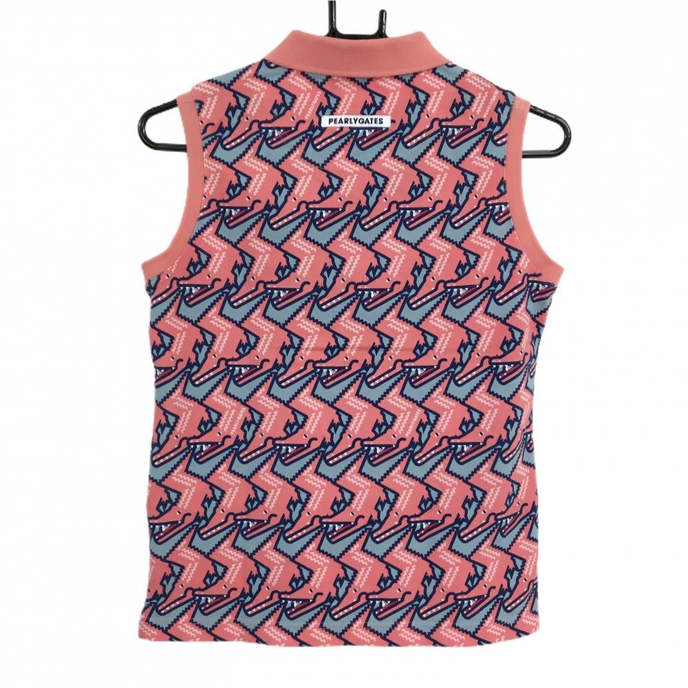 パーリーゲイツ ノースリーブポロシャツ ピンク系×ブルーグレー ワニ総柄 レディース 0(S) ゴルフウェア PEARLY GATES