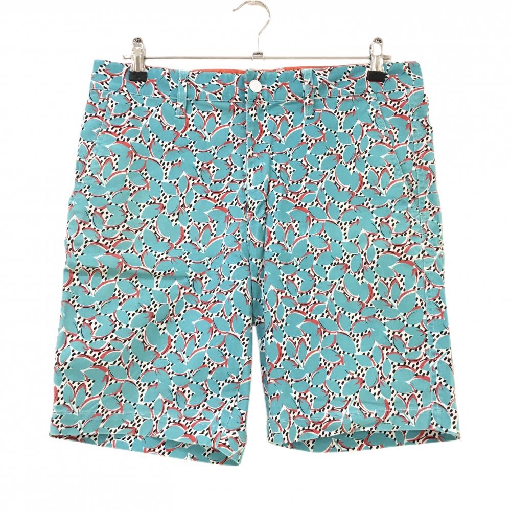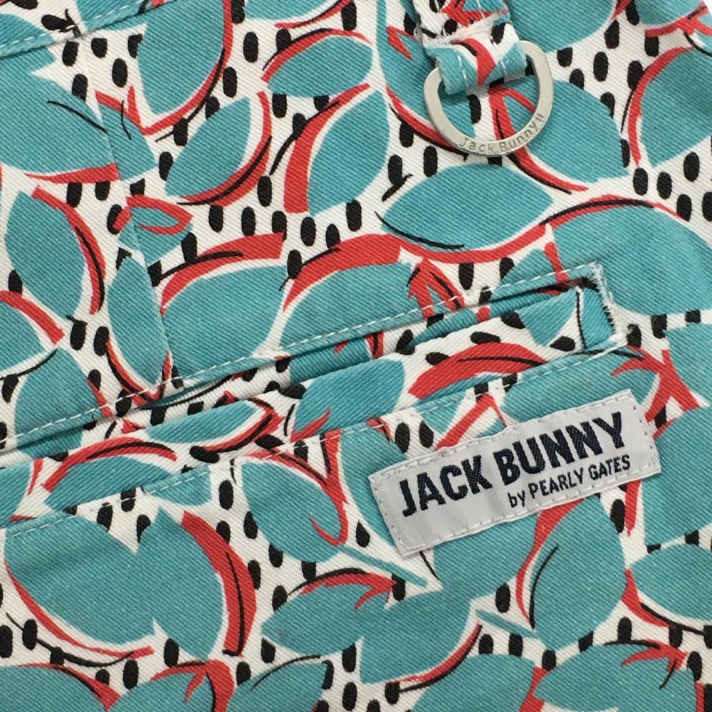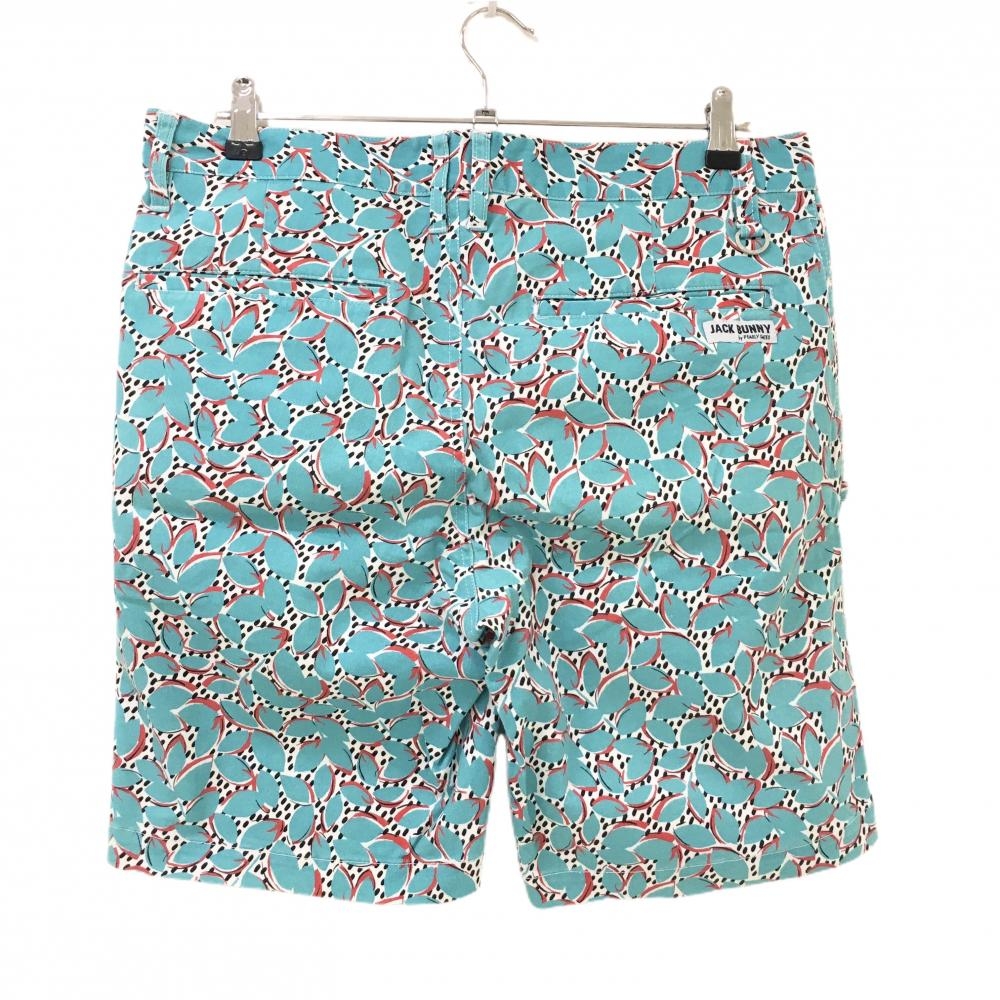 ジャックバニー ハーフパンツ 白×ライトブルー リーフ柄 バックロゴ メンズ 6(XL) ゴルフウェア Jack Bunny