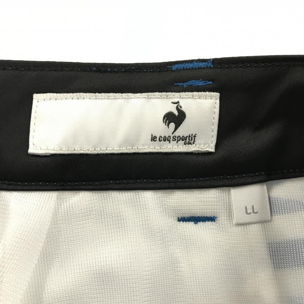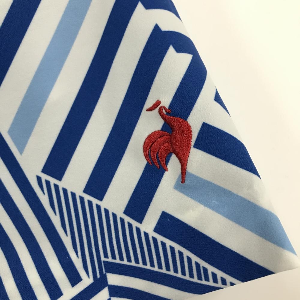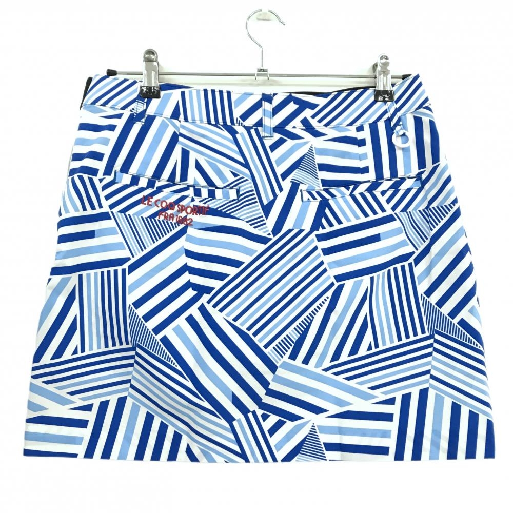 【超美品】ルコックゴルフ スカート 白×ブルー 総柄 ロゴ刺しゅう ストレッチ メッシュ裏地 レディース LL ゴルフウェア le coq sportif