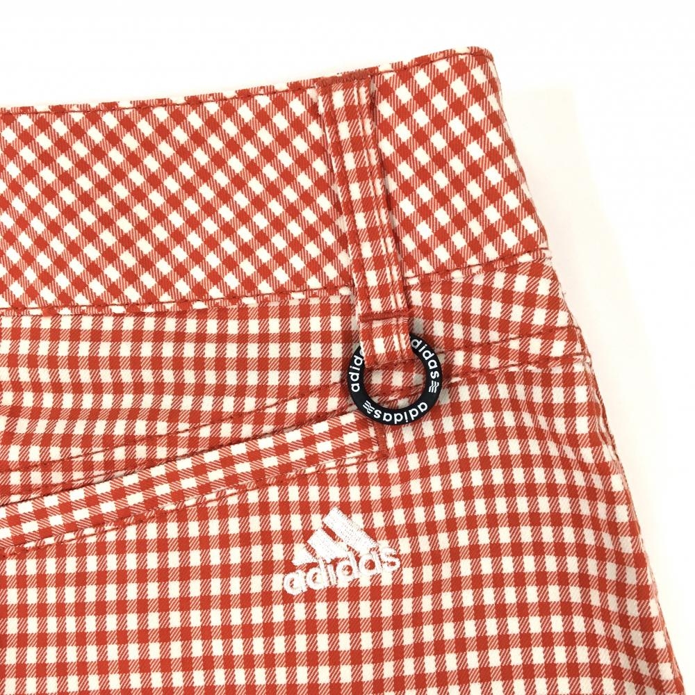 【美品】アディダス スカート レッド×白 ギンガムチェック ストレッチ レディース OT/XG ゴルフウェア adidas