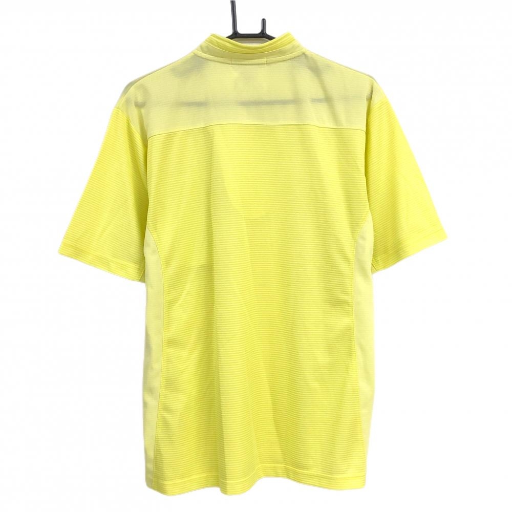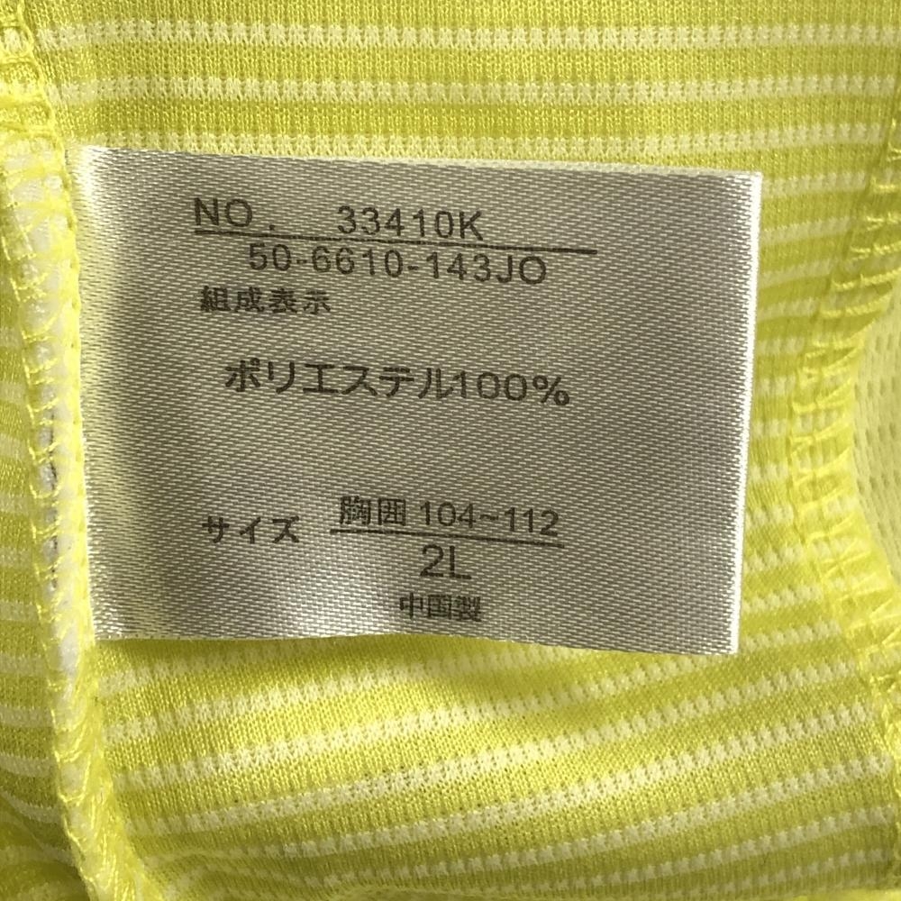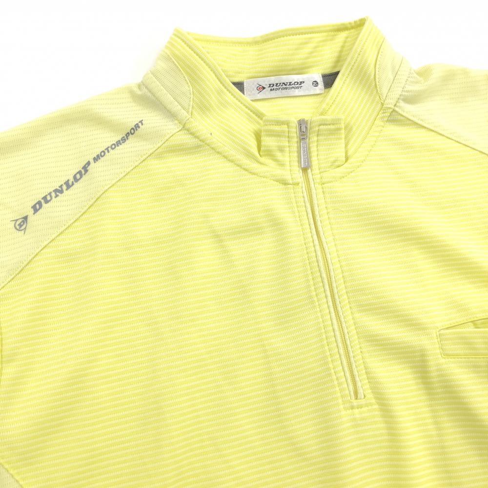 【美品】ダンロップ 半袖ハイネックシャツ イエロー ボーダー地模様 ハーフジップ メンズ 2L ゴルフウェア DUNLOP