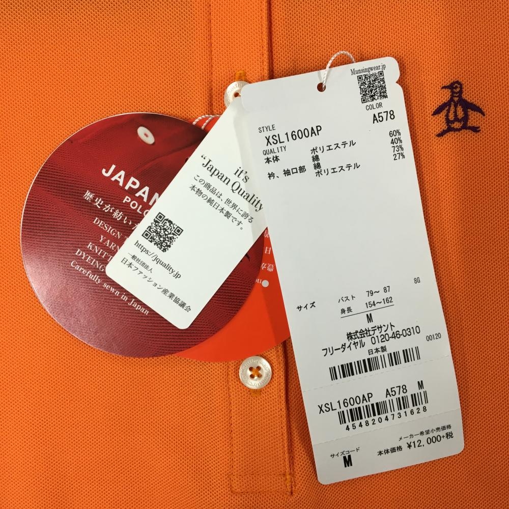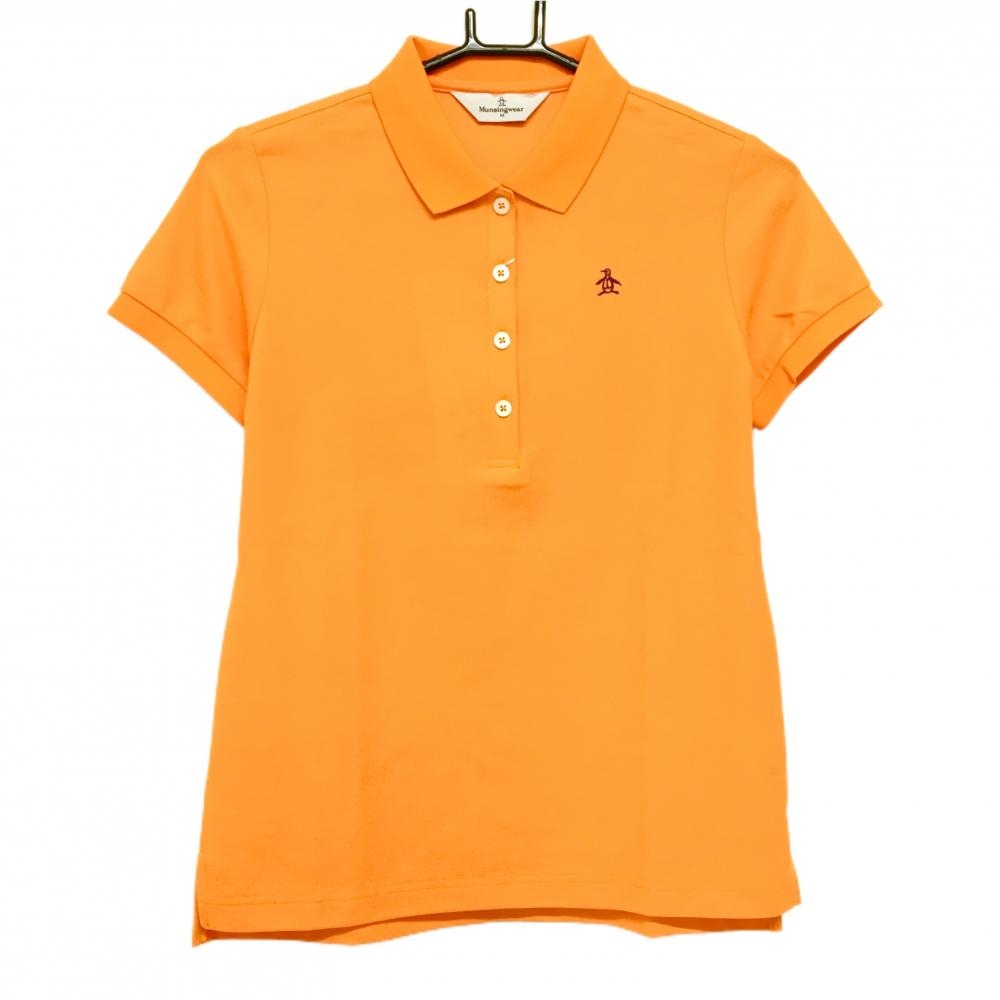 【新品】マンシングウェア 半袖ポロシャツ オレンジ ロゴパープル 日本製 形状記憶素材 レディース M ゴルフウェア Munsingwear