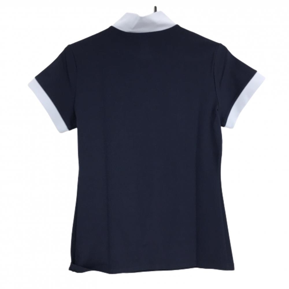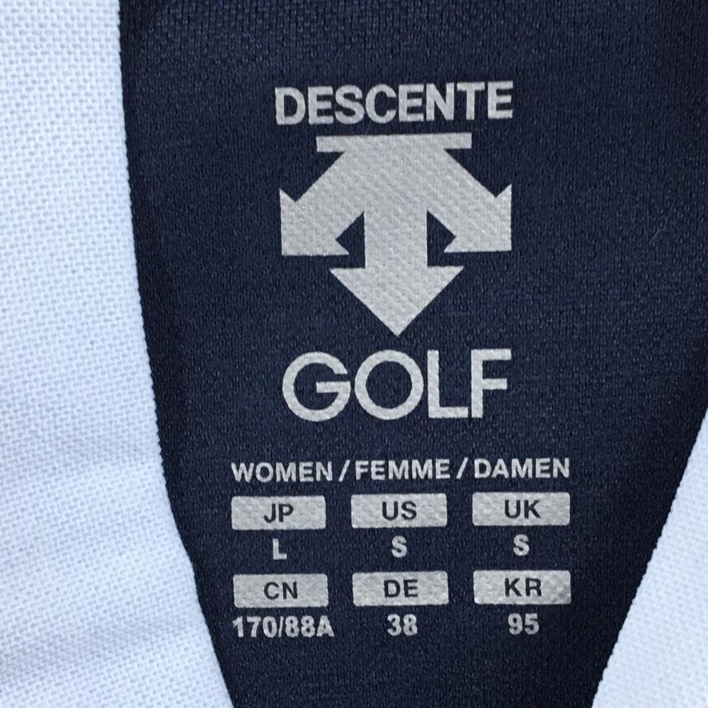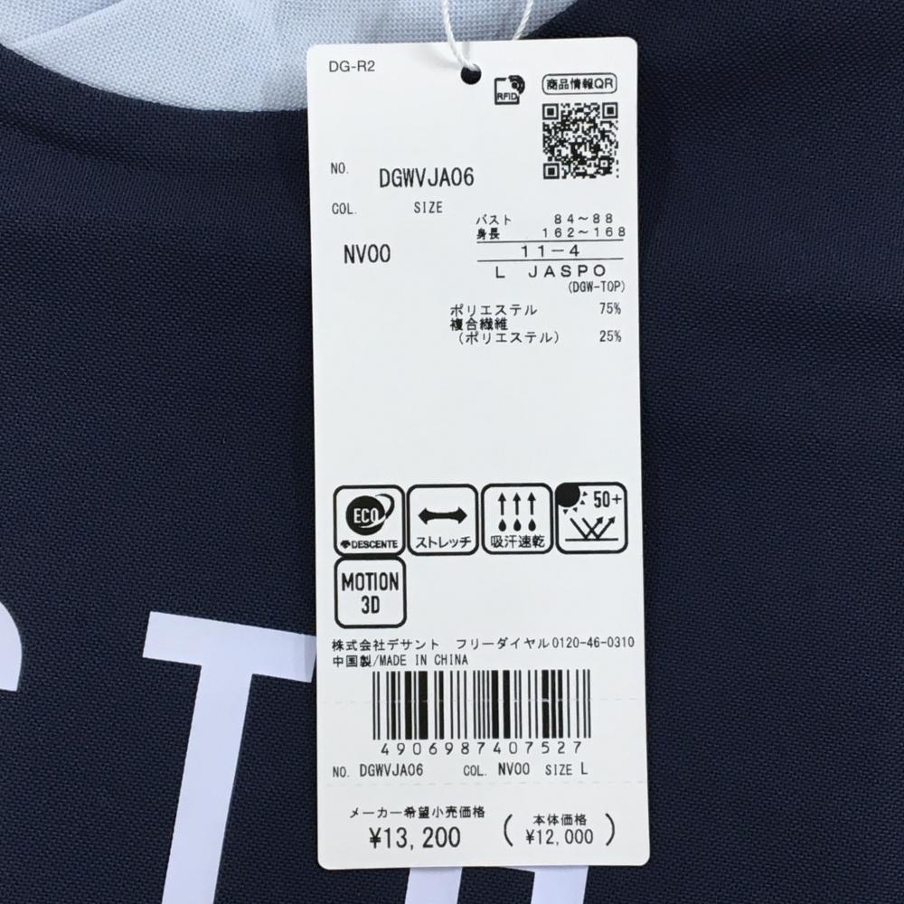 【新品】デサントゴルフ 半袖ハイネックシャツ ネイビー×ライトブルー ストレッチ 吸汗速乾 UVカット レディース L ゴルフウェア DESCENTE