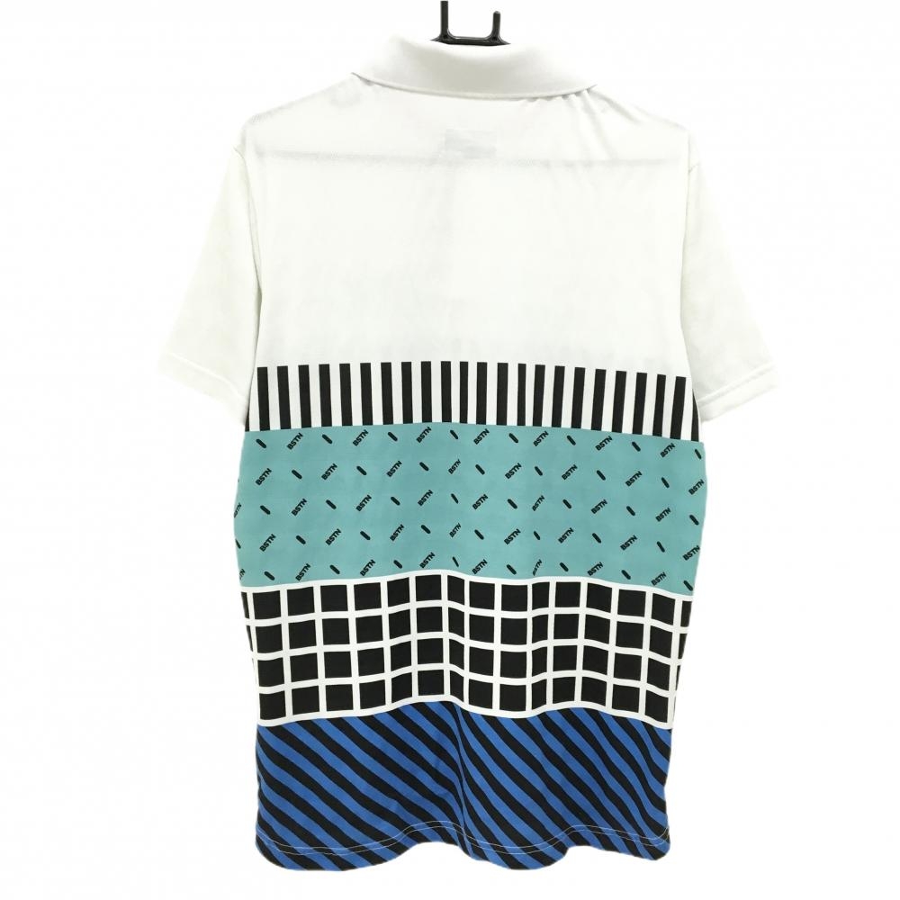 ニューバランスゴルフ 半袖ポロシャツ 白×黒 ボーダー地模様 一部総柄 メンズ 6(XL) ゴルフウェア New Balance