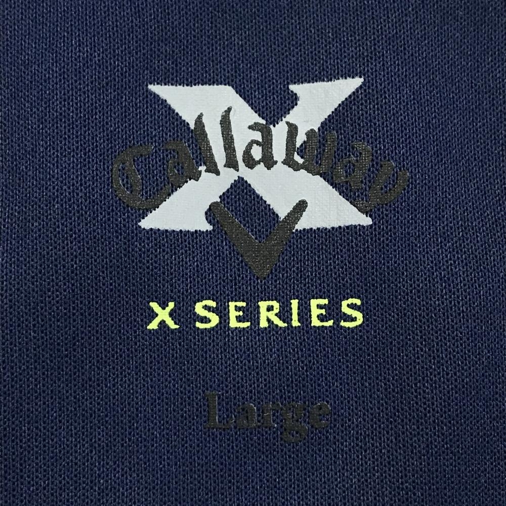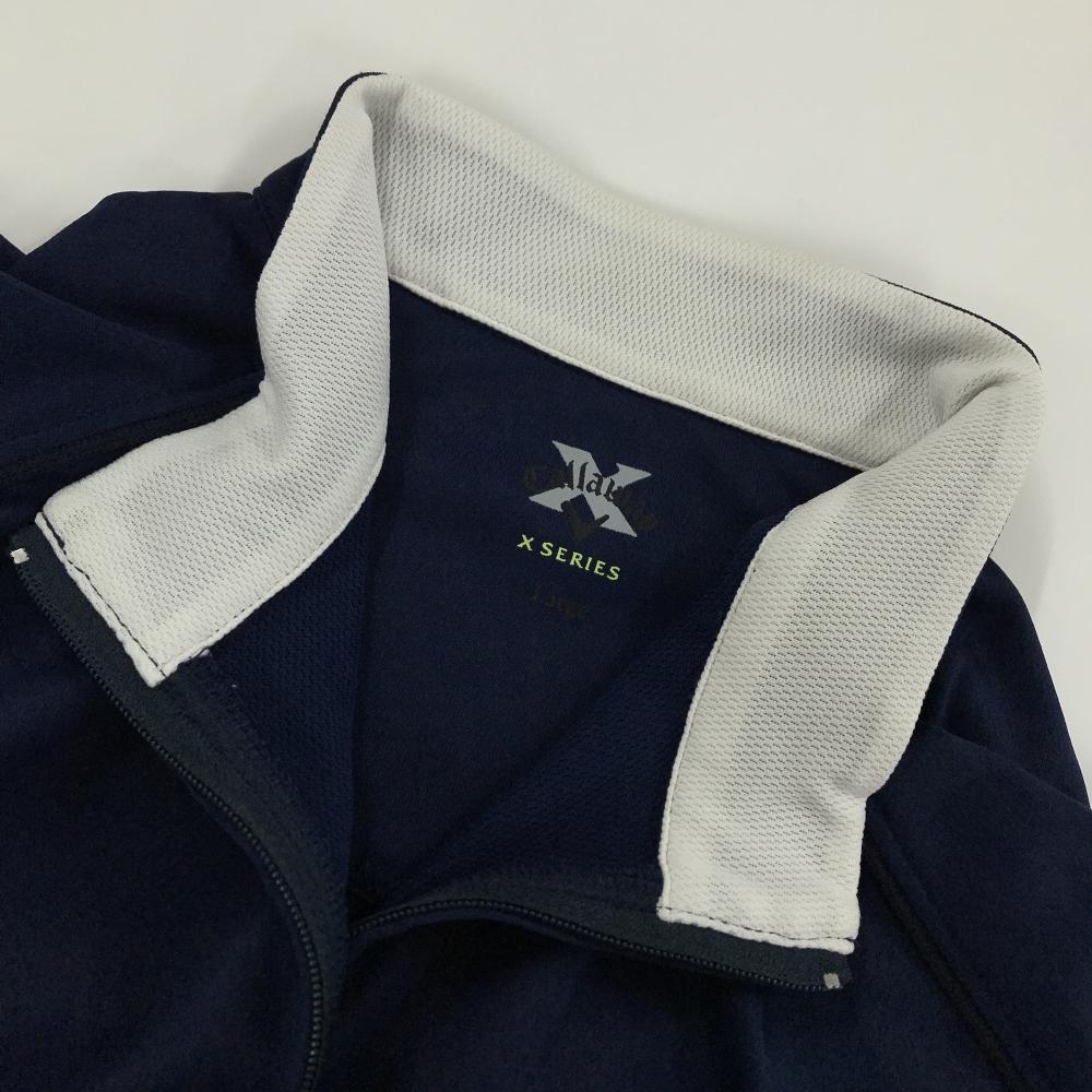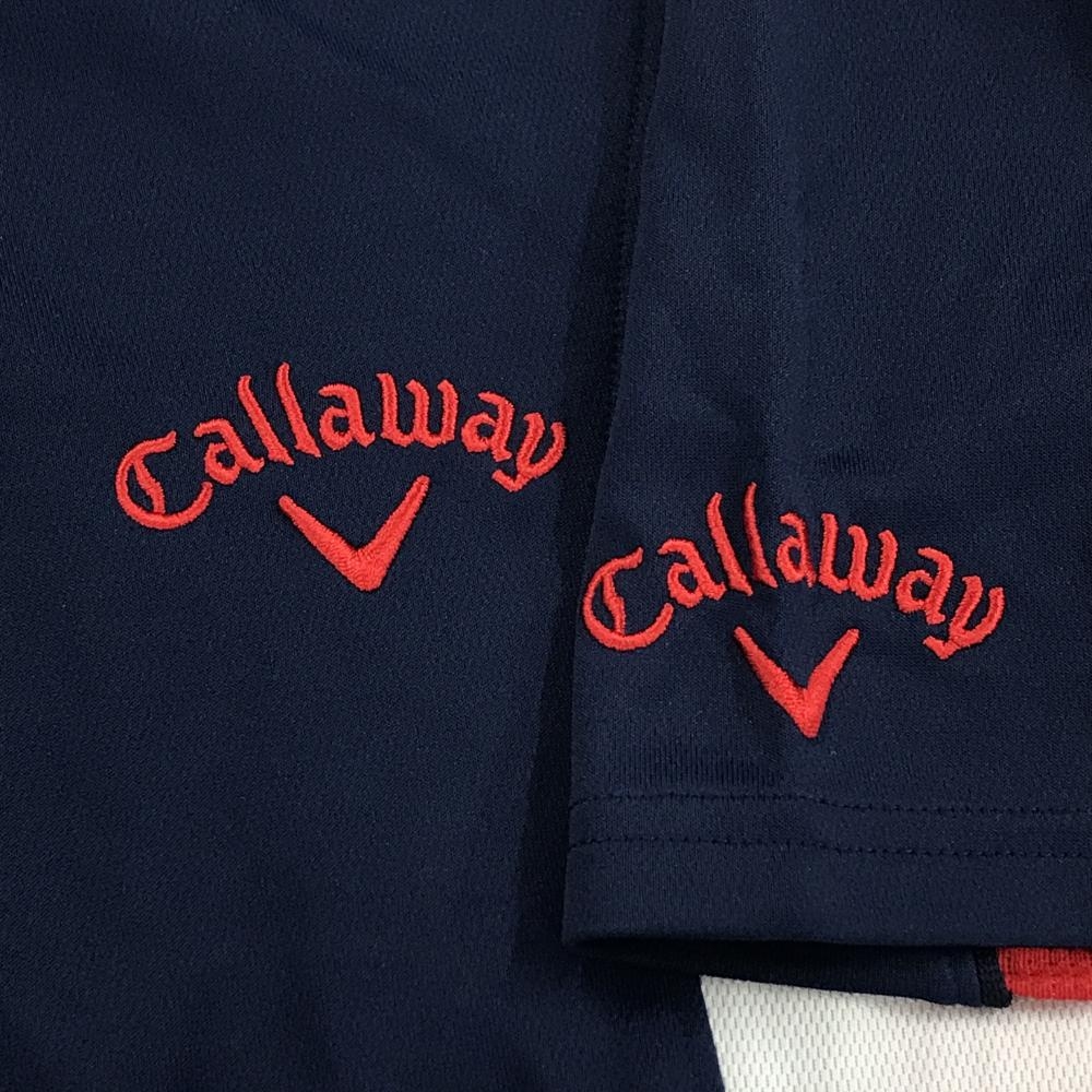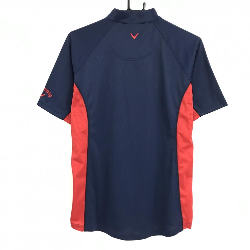 【美品】キャロウェイ 半袖ハイネックシャツ ネイビー×レッド ハーフジップ ロゴ刺しゅう メンズ rarge ゴルフウェア Callaway