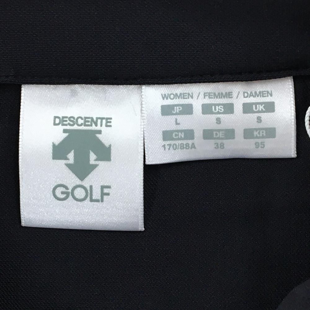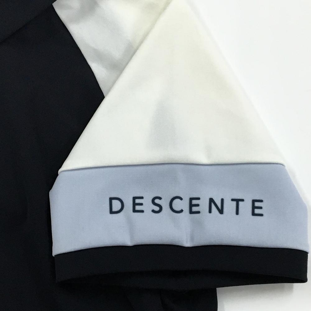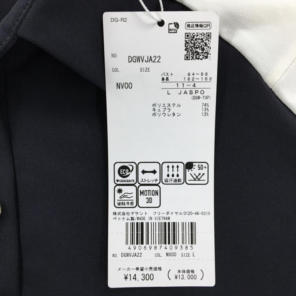 【新品】デサントゴルフ 半袖ポロシャツ ネイビー×白 スナップボタン ストレッチ 吸汗速乾 UVカット レディース L ゴルフウェア DESCENTE