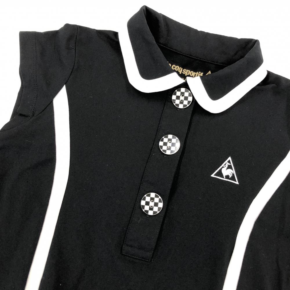 【超美品】ルコックゴルフ 半袖ポロワンピース 黒×白 ロゴ刺しゅう レディース S ゴルフウェア le coq sportif