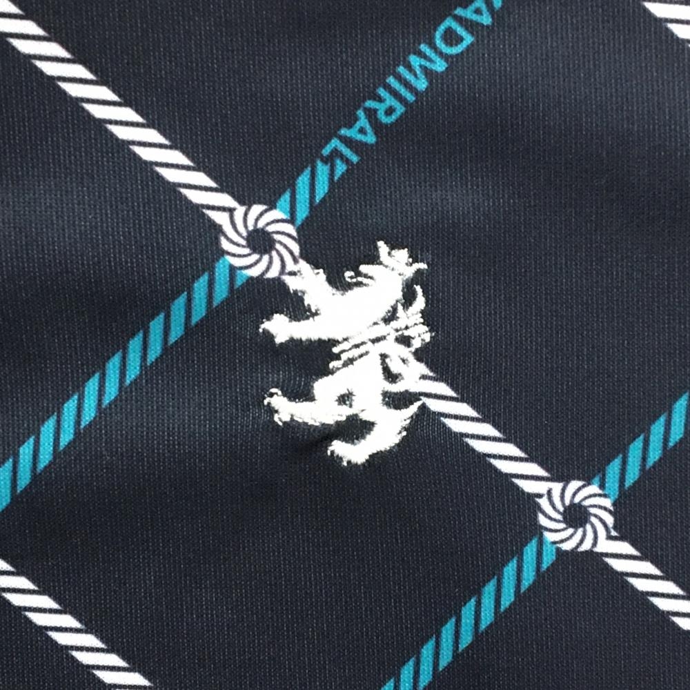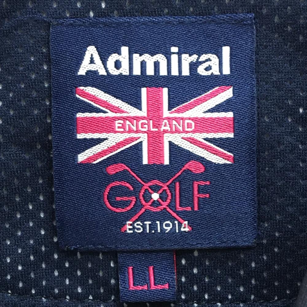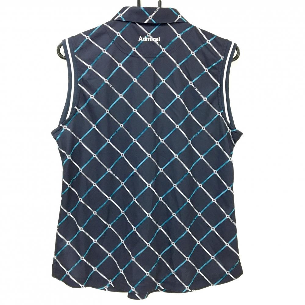 【超美品】アドミラル ノースリーブポロシャツ ネイビー×白 斜め格子柄 ロゴ刺しゅう レディース LL ゴルフウェア Admiral