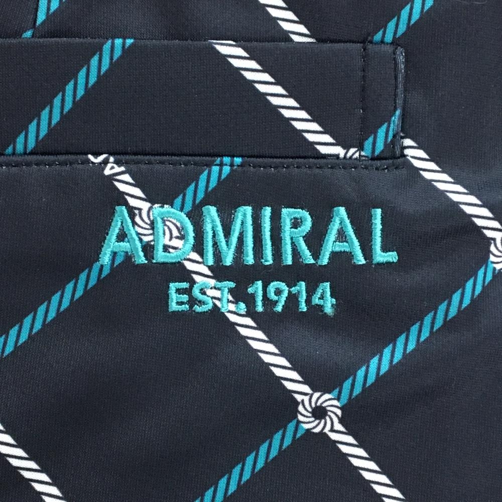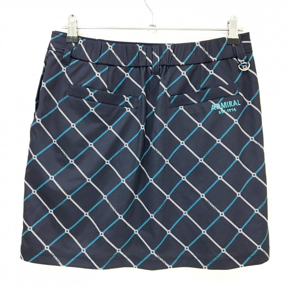 【超美品】アドミラル スカート ネイビー×白 斜め格子柄 バックロゴ刺しゅう ウエスト一部ゴム レディース LL ゴルフウェア Admiral