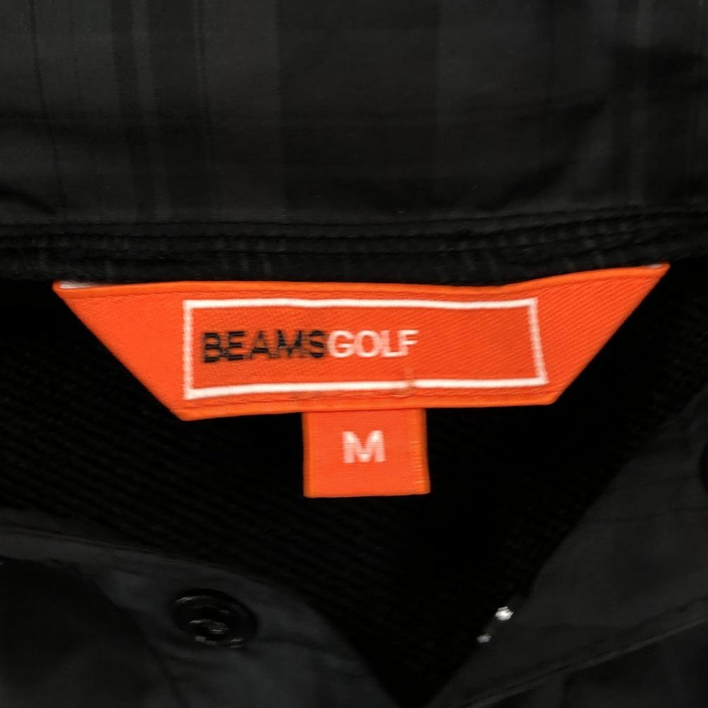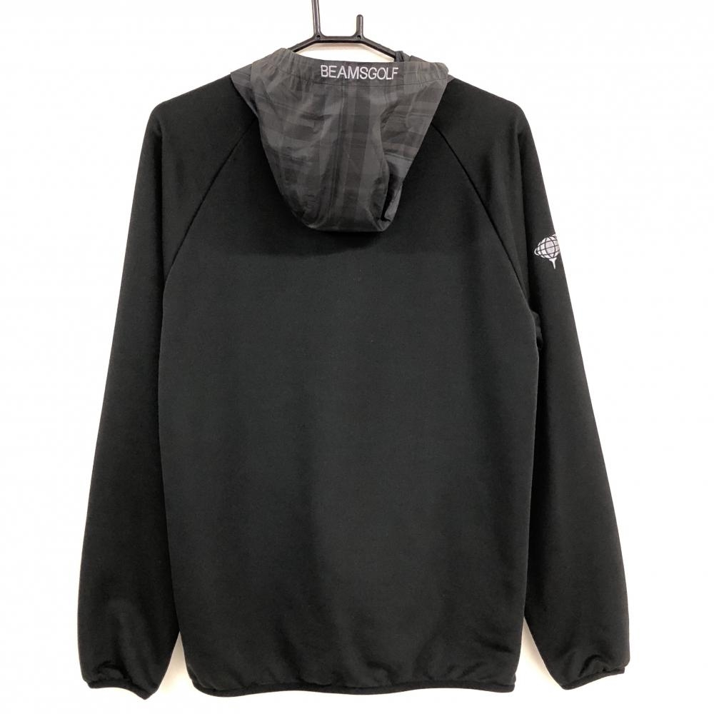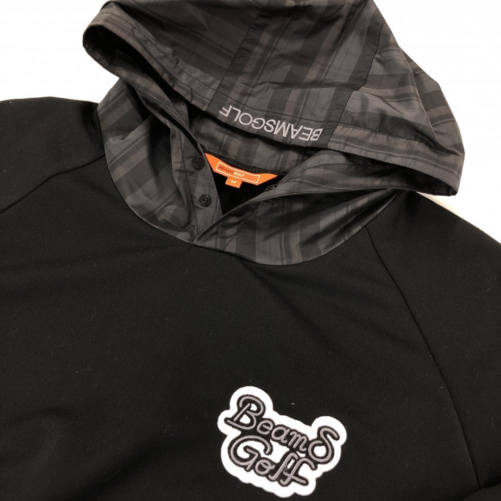 【超美品】ビームスゴルフ 切替パーカー 黒×グレー パーカー部チェック柄 ロゴ刺しゅう メンズ M ゴルフウェア BEAMS GOLF