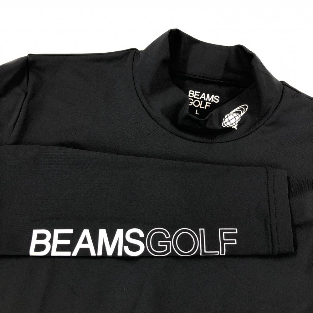 【超美品】ビームスゴルフ ハイネックインナーシャツ 黒×白 ロゴプリント メンズ L ゴルフウェア BEAMS GOLF