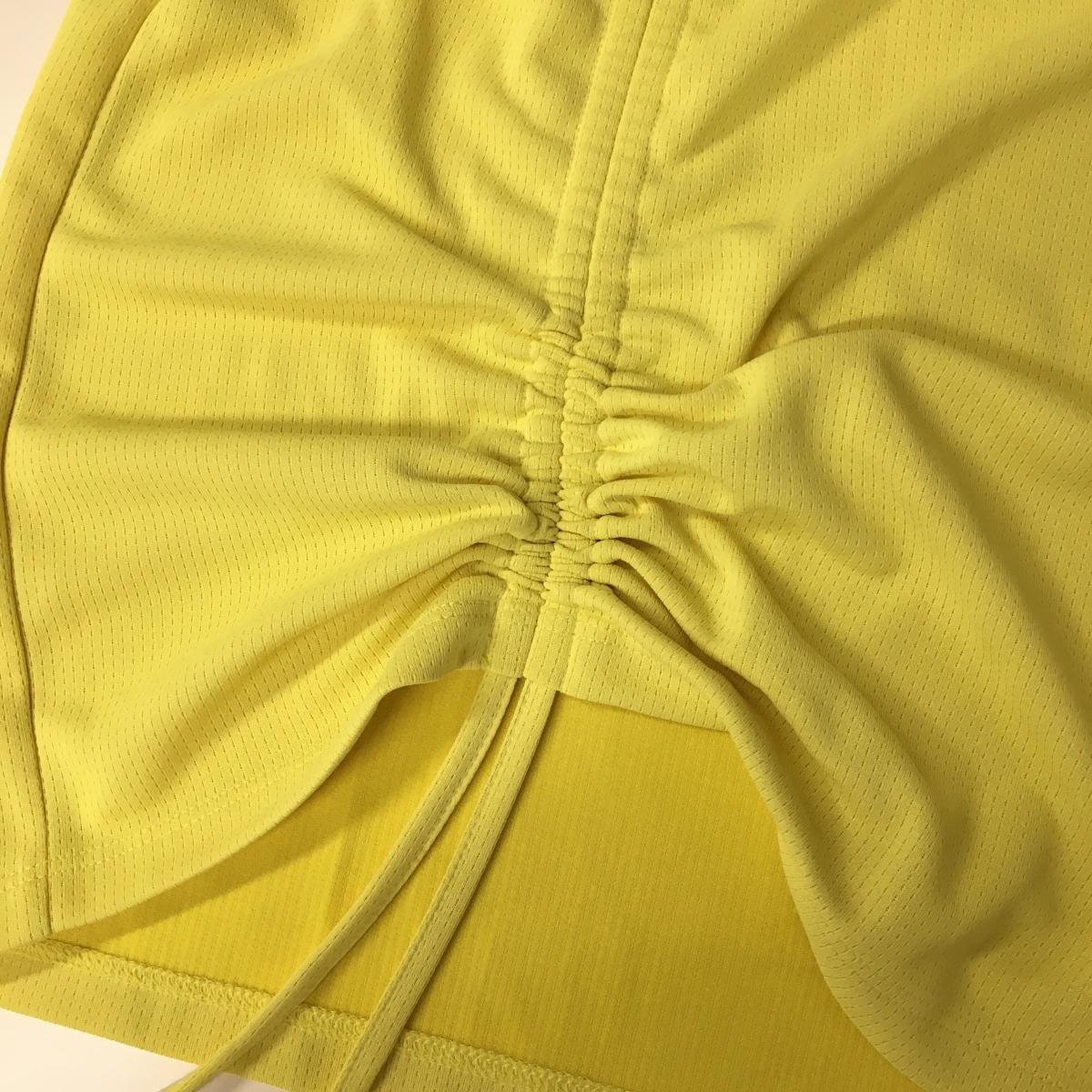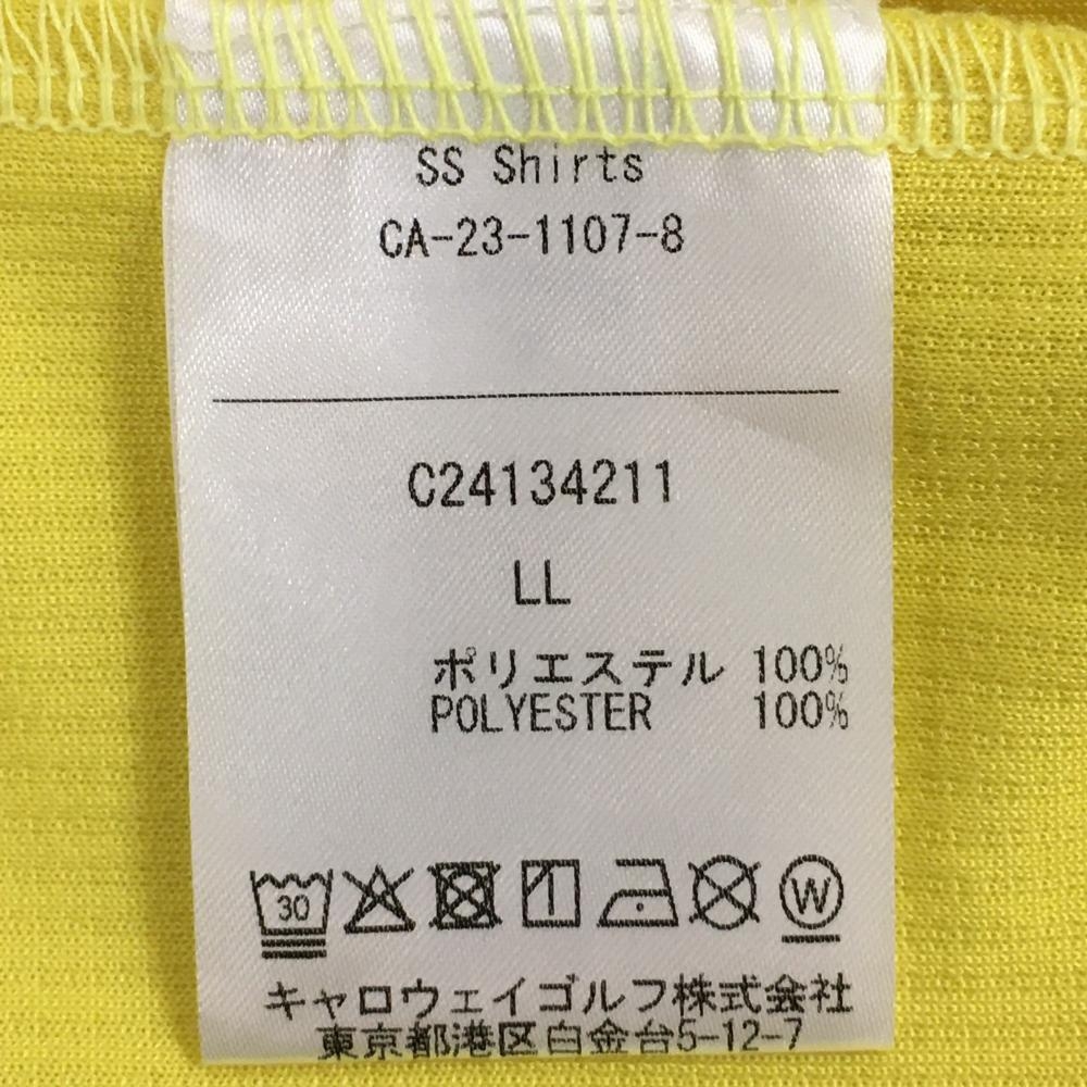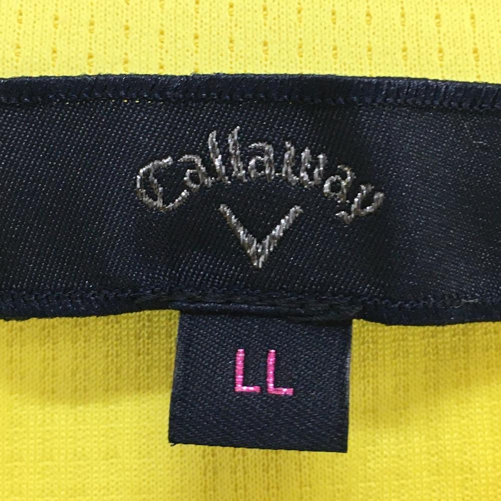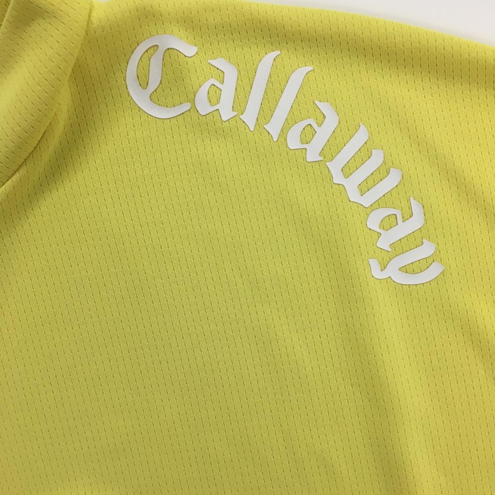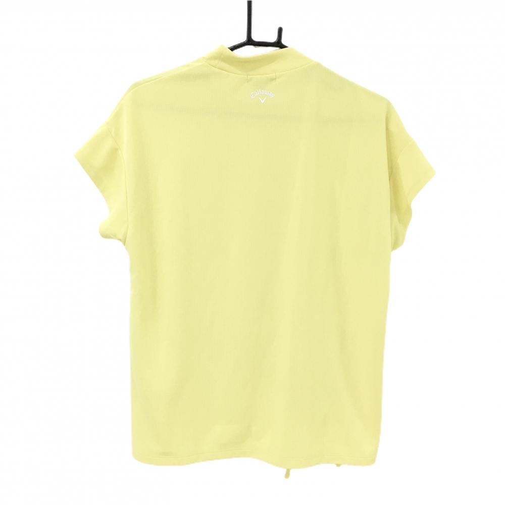 【超美品】キャロウェイ 半袖ハイネックシャツ イエロー メッシュ風生地 ロゴ レディース LL ゴルフウェア 2024年モデル Callaway