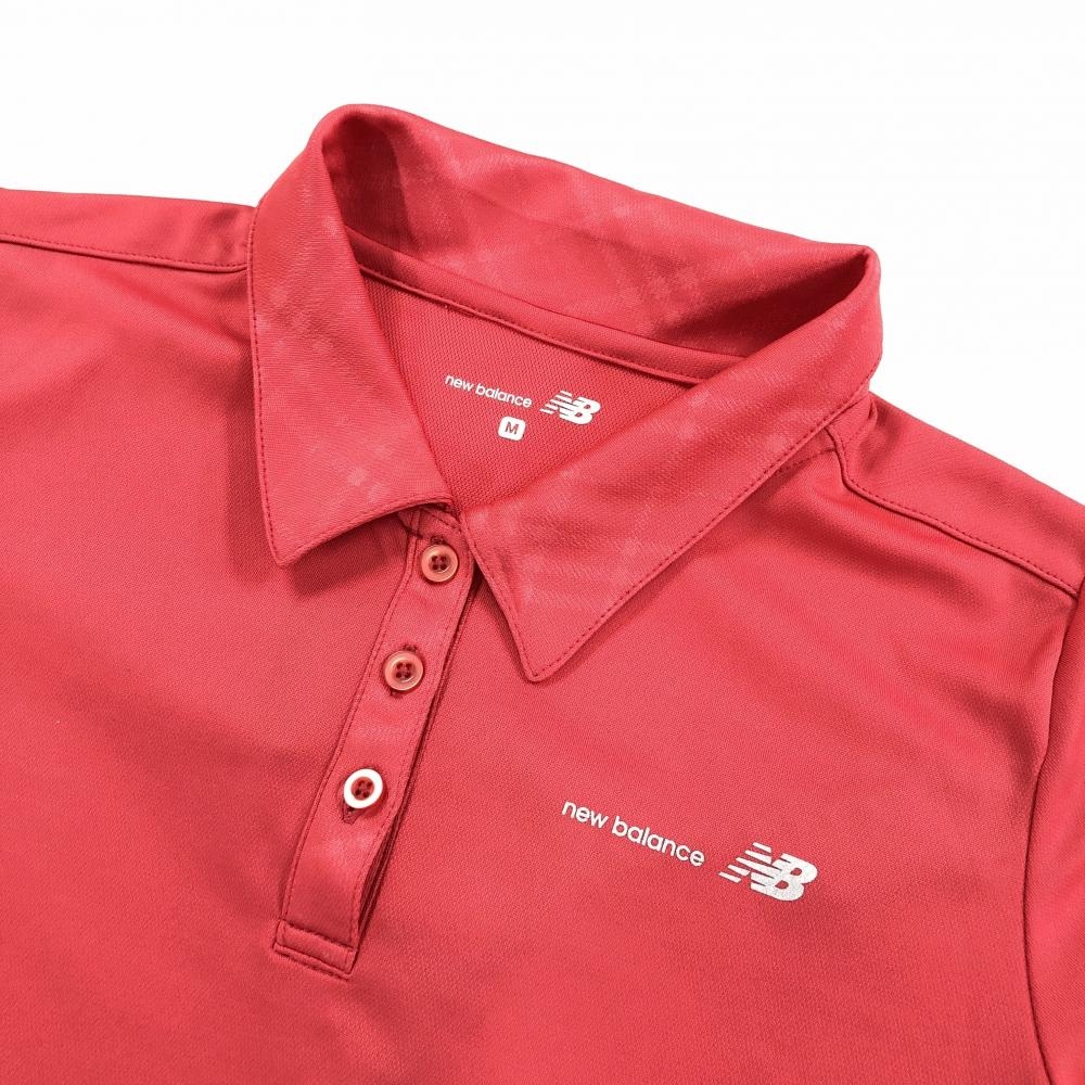 【超美品】ニューバランス 半袖ポロシャツ ピンク 襟・袖口地模様 ロゴシルバー レディース M ゴルフウェア New Balance