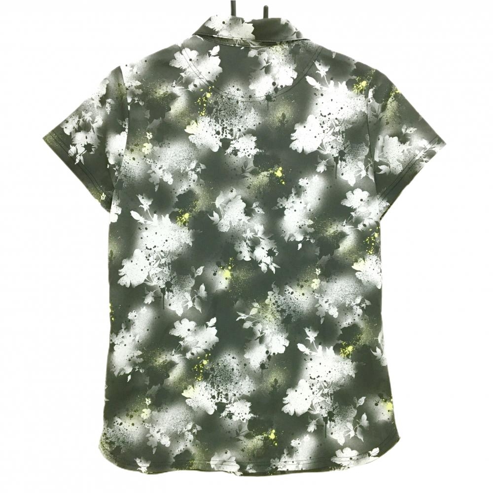 【超美品】キャロウェイ 半袖ポロシャツ グレー×白 花柄 スプレーアート調 接触冷感 レディース LL ゴルフウェア 2024年モデル Callaway