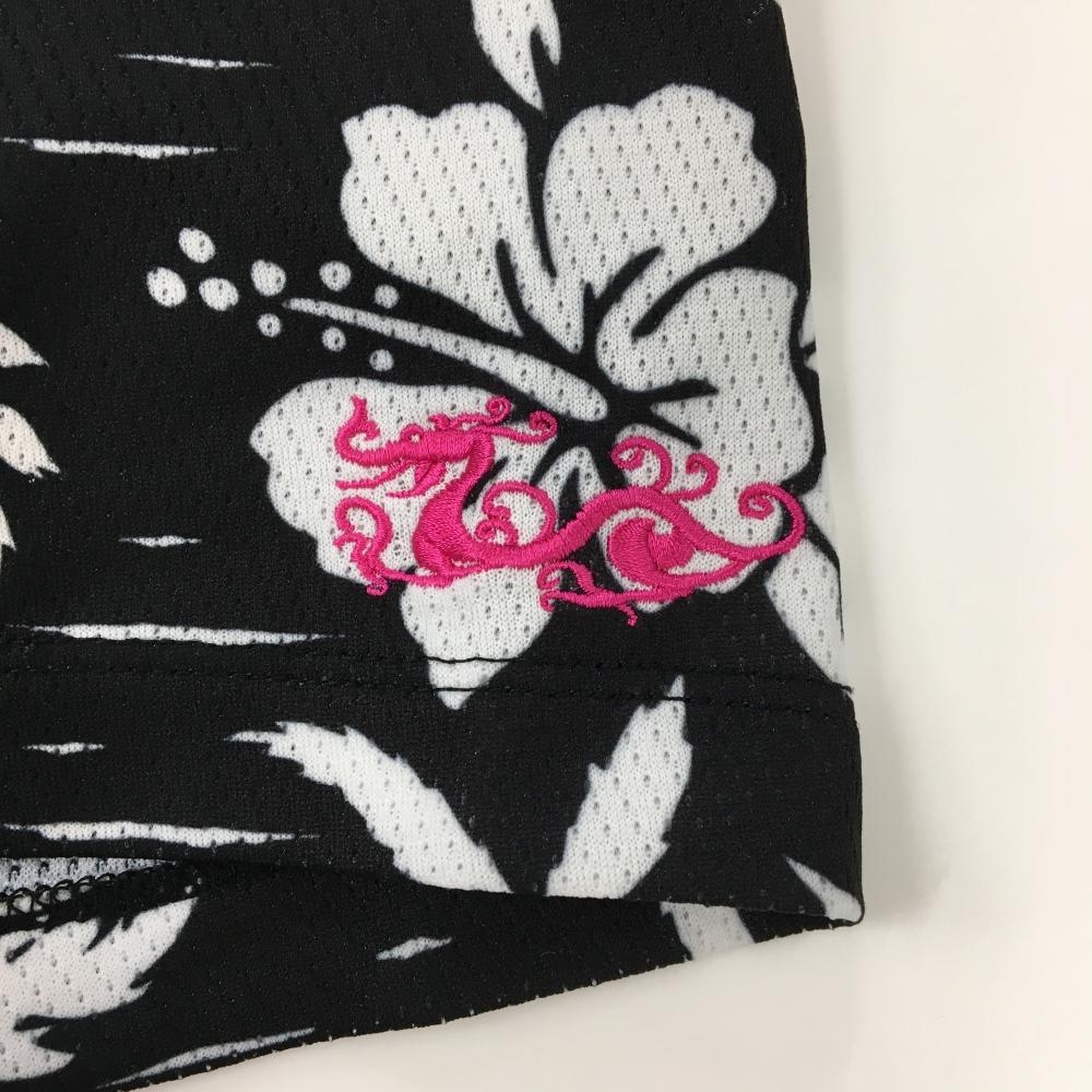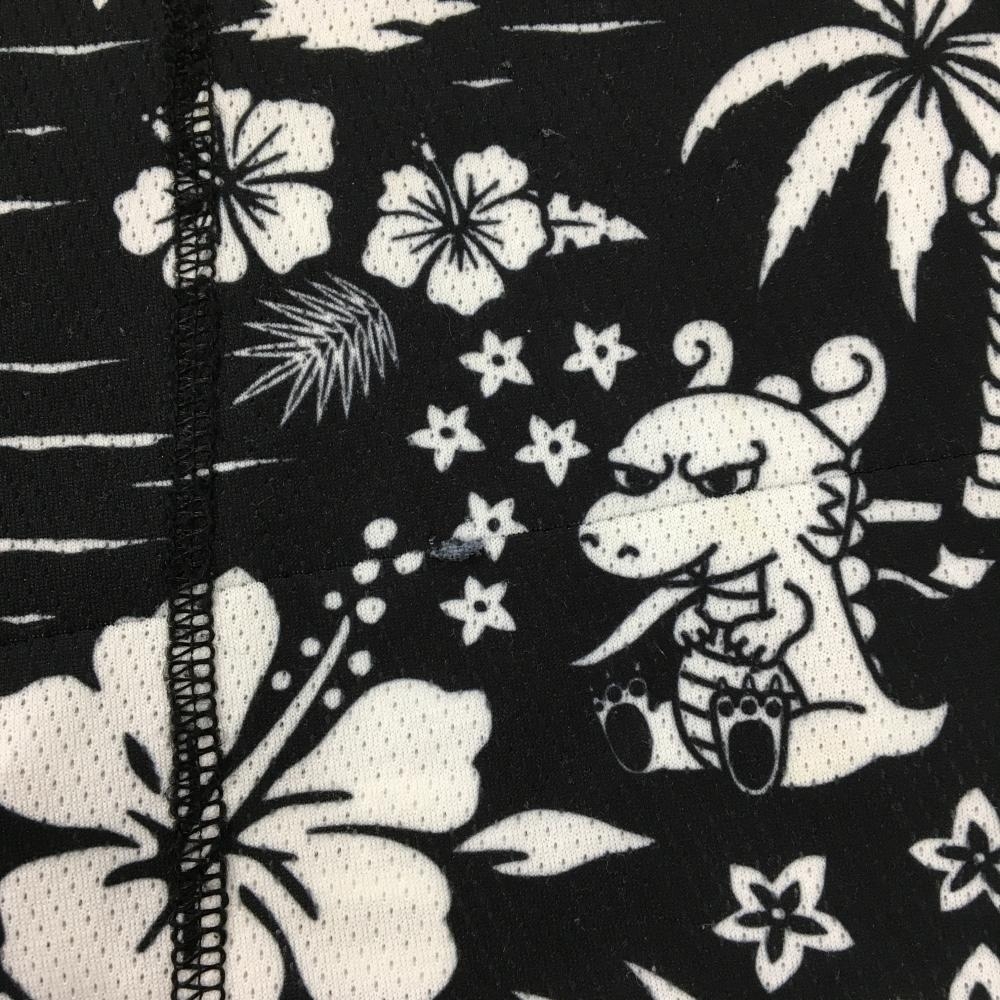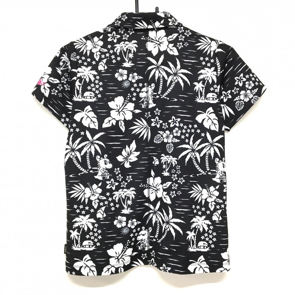 ダンスウィズドラゴン 半袖ポロシャツ 黒×白 総柄 チビドラ ヤシの木 ハイビスカス レディース 2(M) ゴルフウェア Dance With Dragon