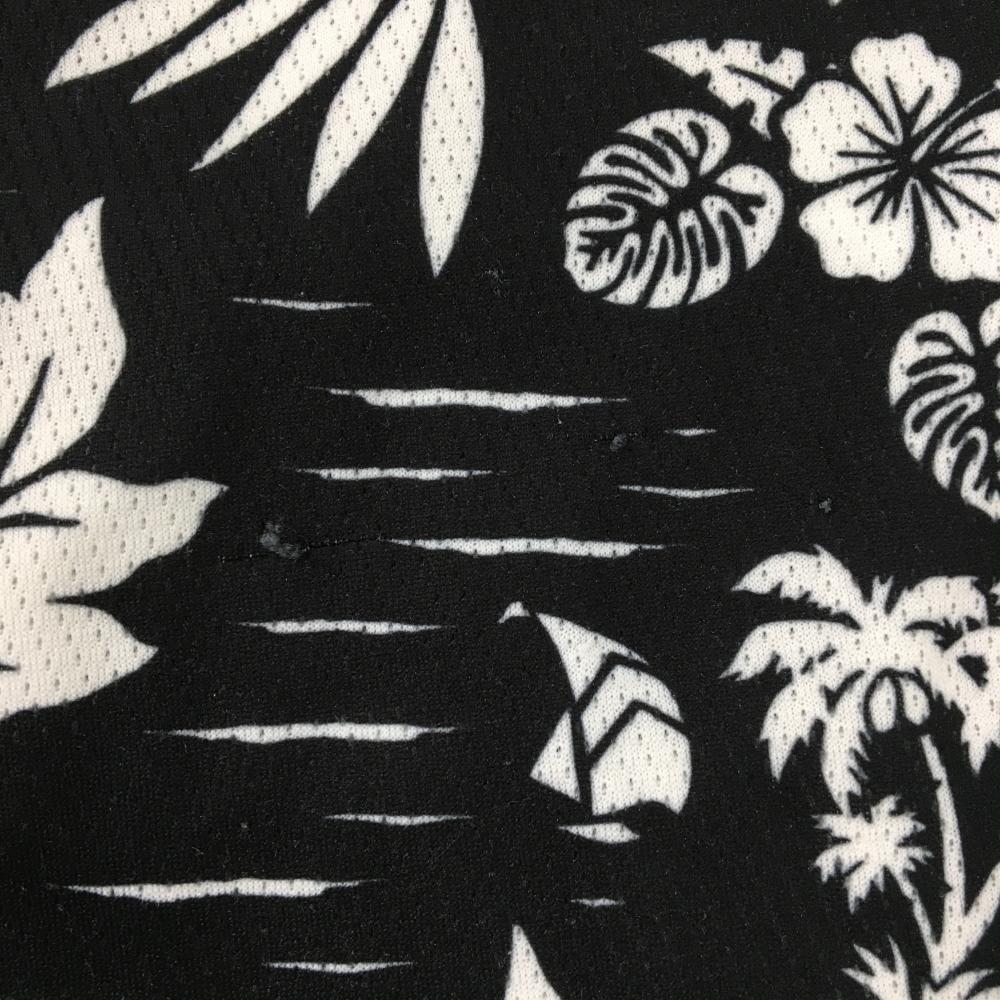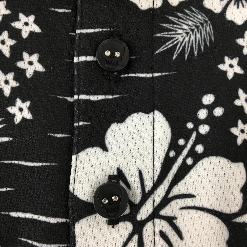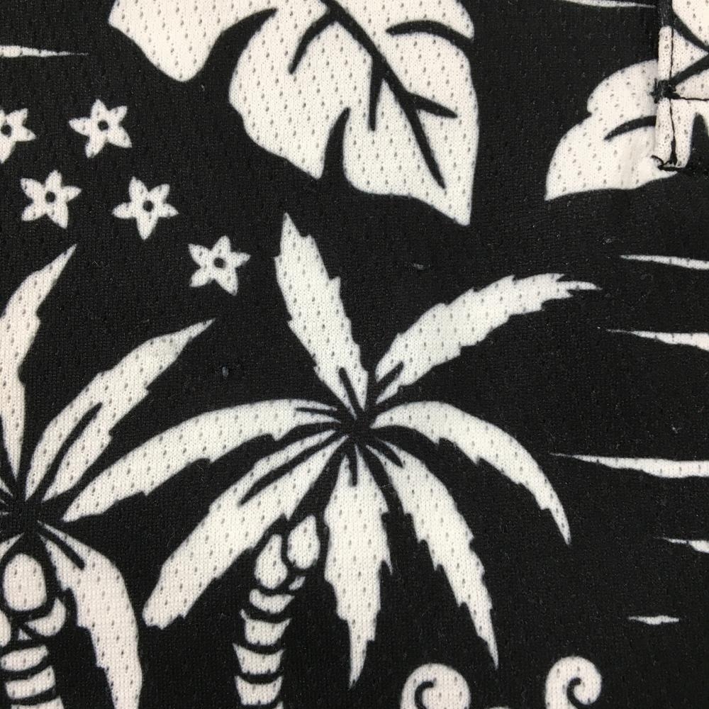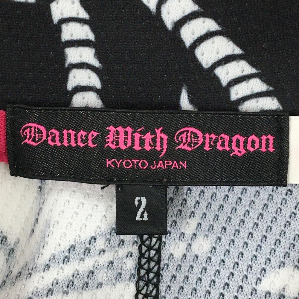 ダンスウィズドラゴン 半袖ポロシャツ 黒×白 総柄 チビドラ ヤシの木 ハイビスカス レディース 2(M) ゴルフウェア Dance With Dragon