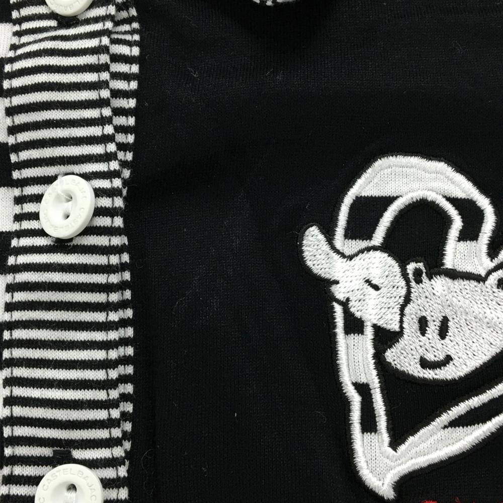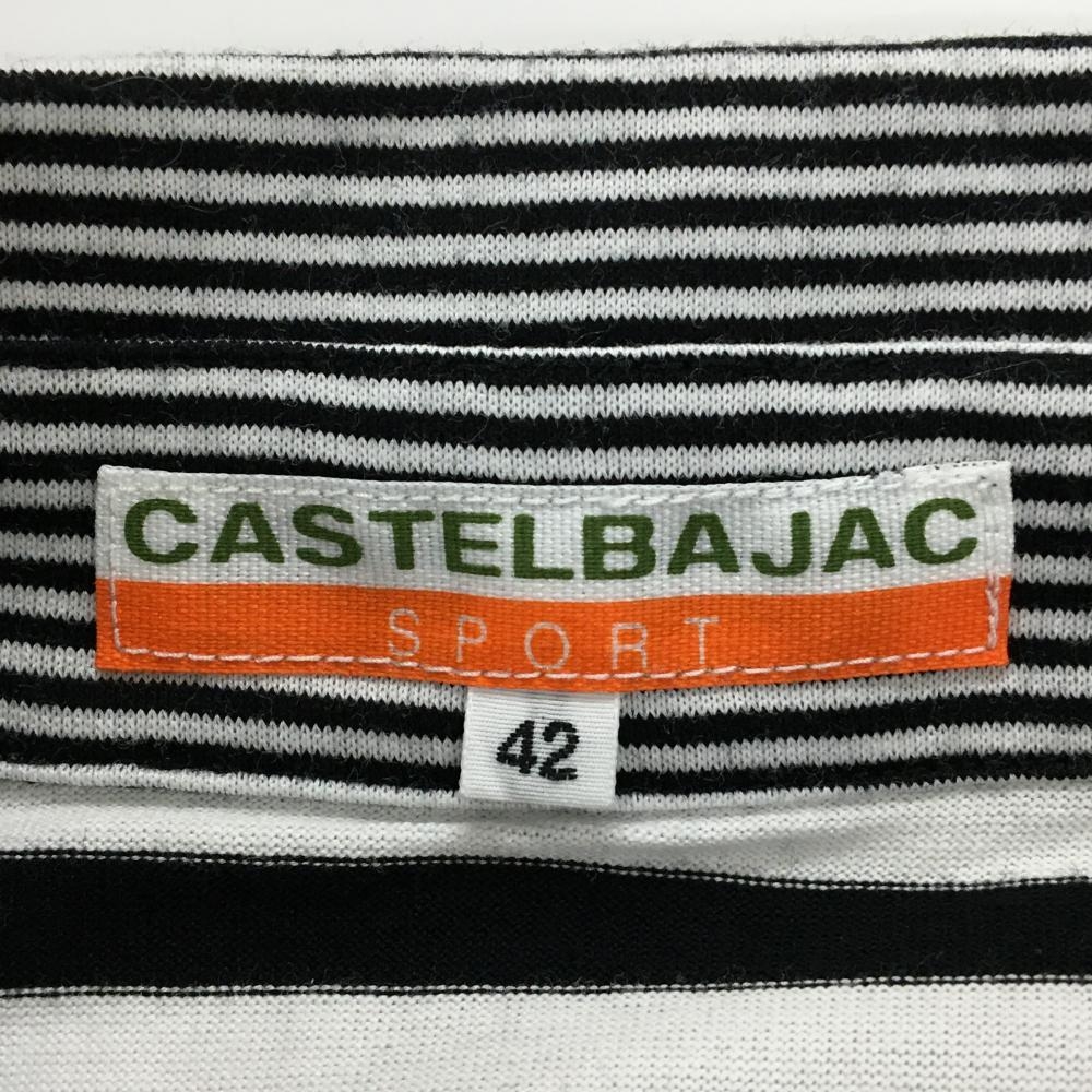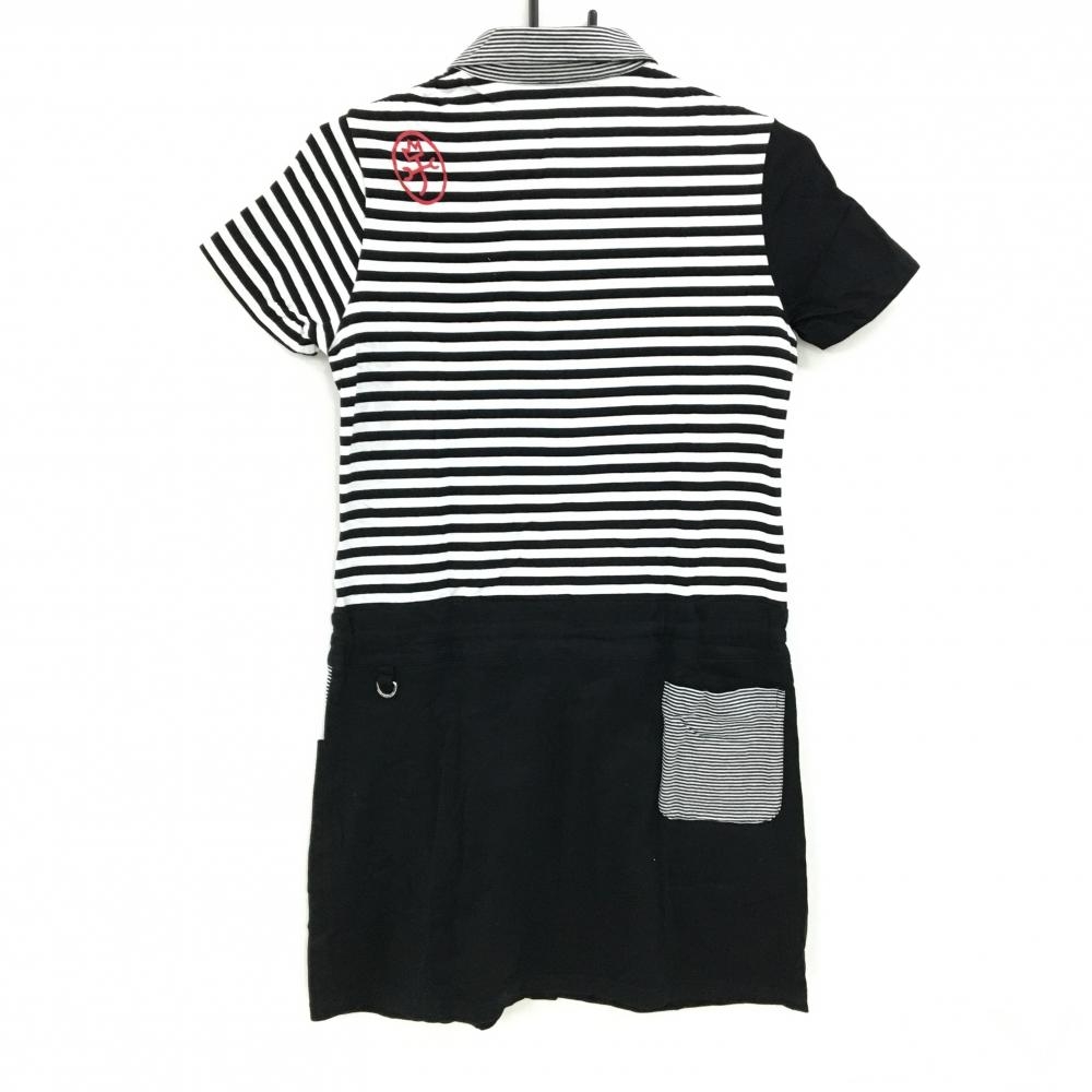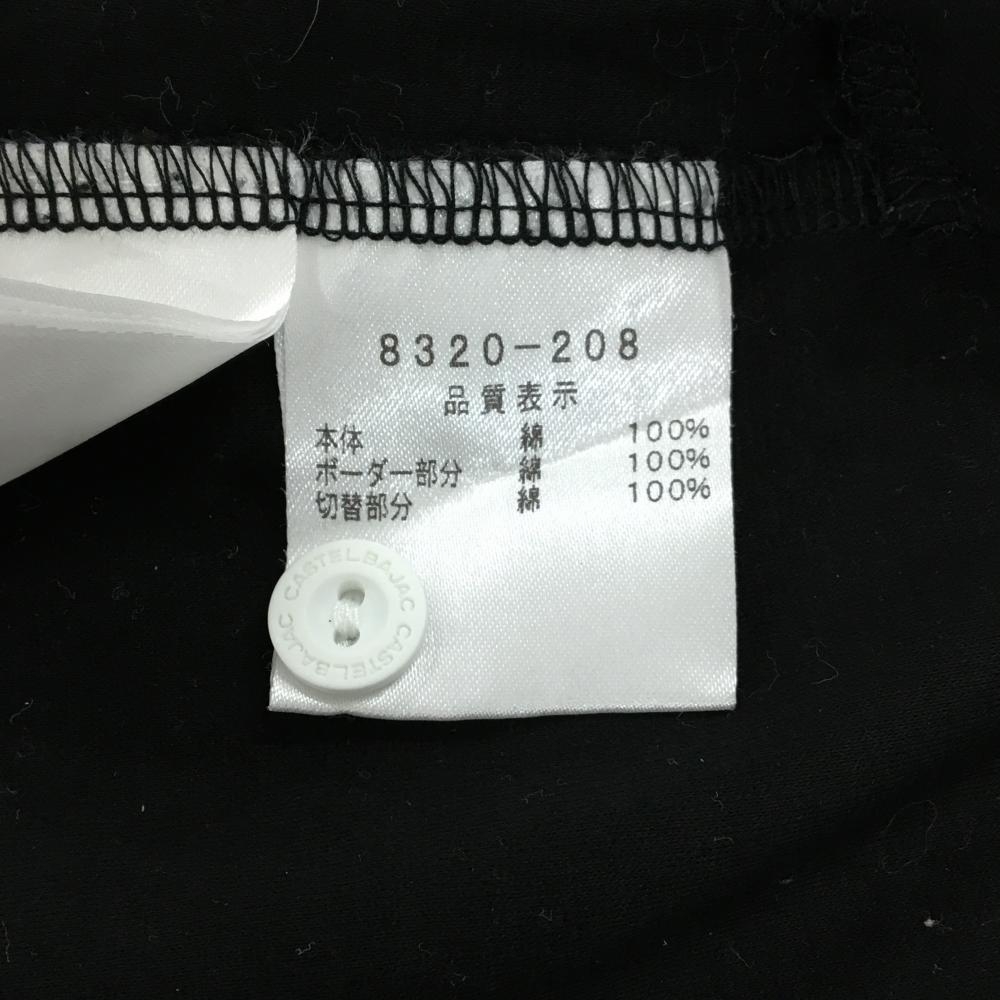 カステルバジャック 半袖ポロワンピース 黒×白 一部ボーダー 胸元ロゴ ウエスト紐 レディース 42(L) ゴルフウェア CASTELBAJAC