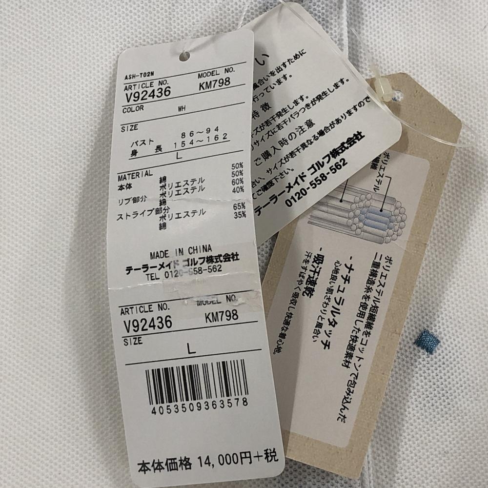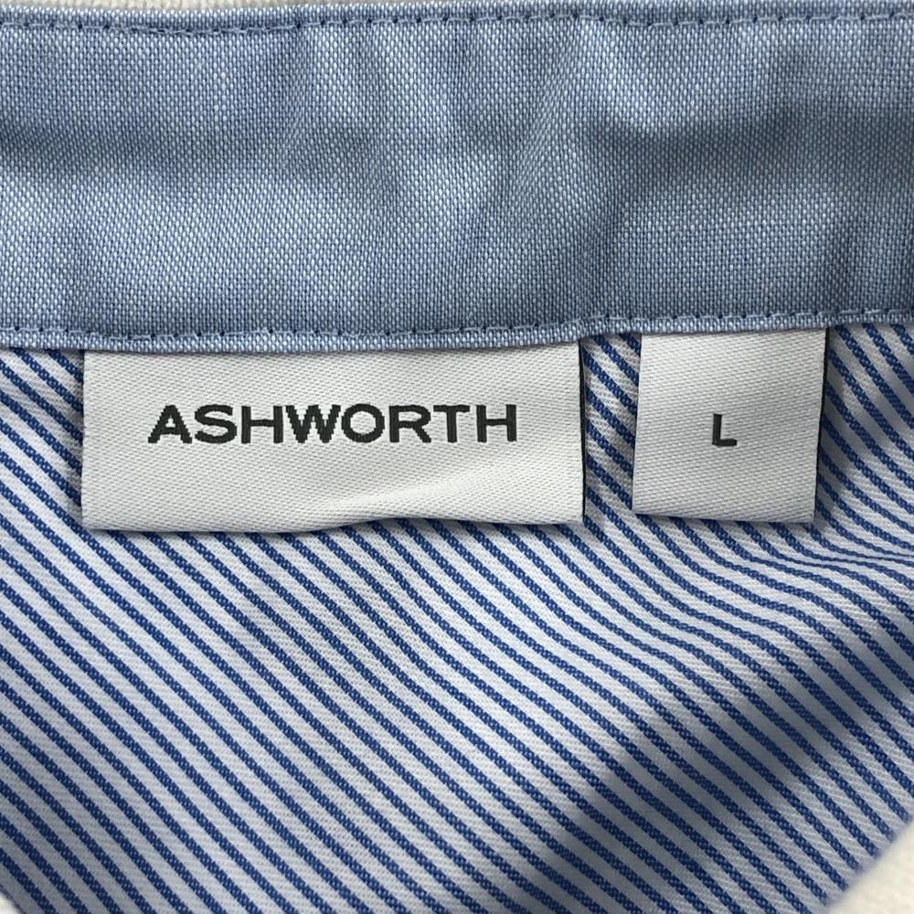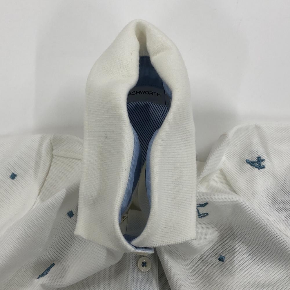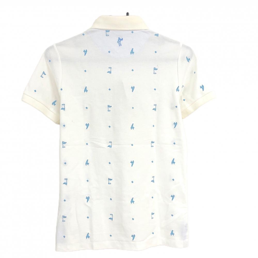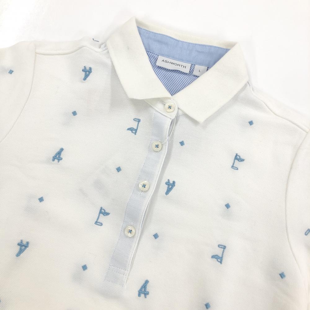 【新品】アシュワース 半袖ポロシャツ 白×ブルー系 総柄 レディース L ゴルフウェア ASHWORTH