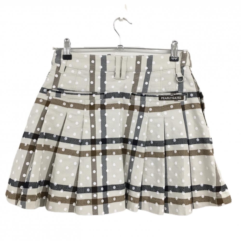 【超美品】パーリーゲイツ プリーツスカート ライトベージュ系×白×ネイビー レディース 0(S) ゴルフウェア 2025年モデル PEARLY GATES