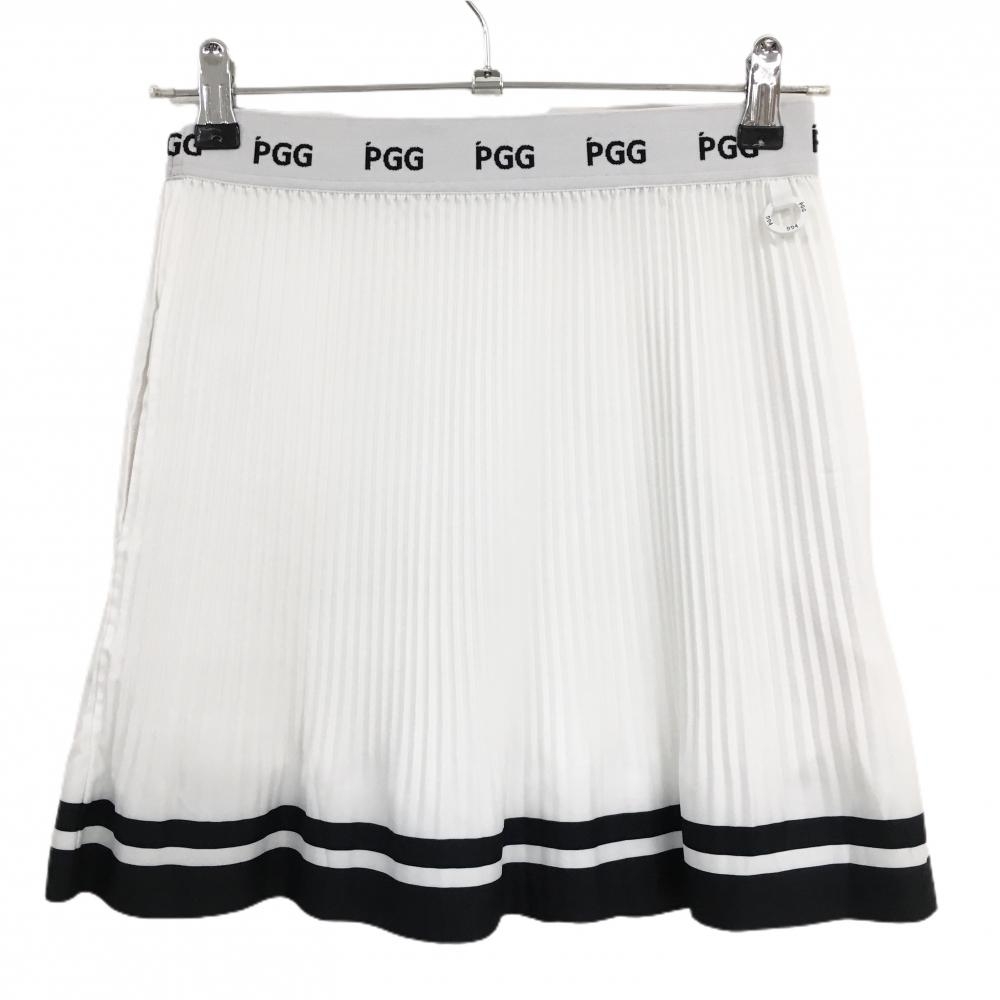 【超美品】PGGパーリーゲイツ スカート 白×黒 プリーツ 裾ライン ウエストゴム レディース 0(S) ゴルフウェア PEARLY GATES