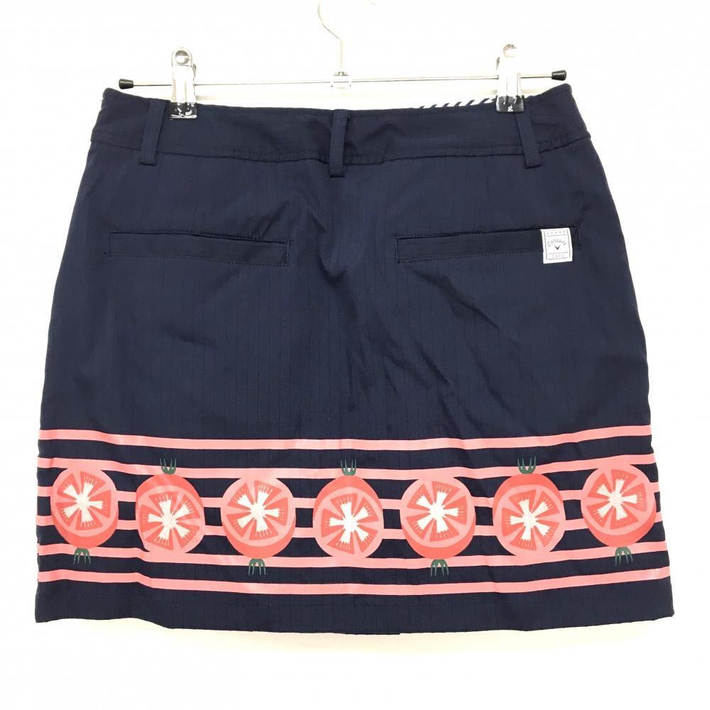 【美品】キャロウェイ スカート ネイビー×ピンク 裾 トマト 地模様 レディース LL ゴルフウェア Callaway