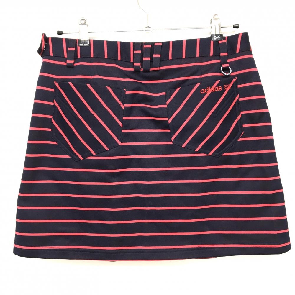 【美品】アディダス スカート ネイビー×ピンク ボーダー ストレッチ レディース OT/XG ゴルフウェア adidas