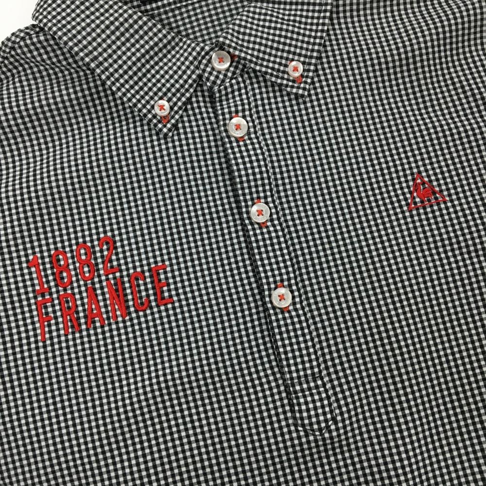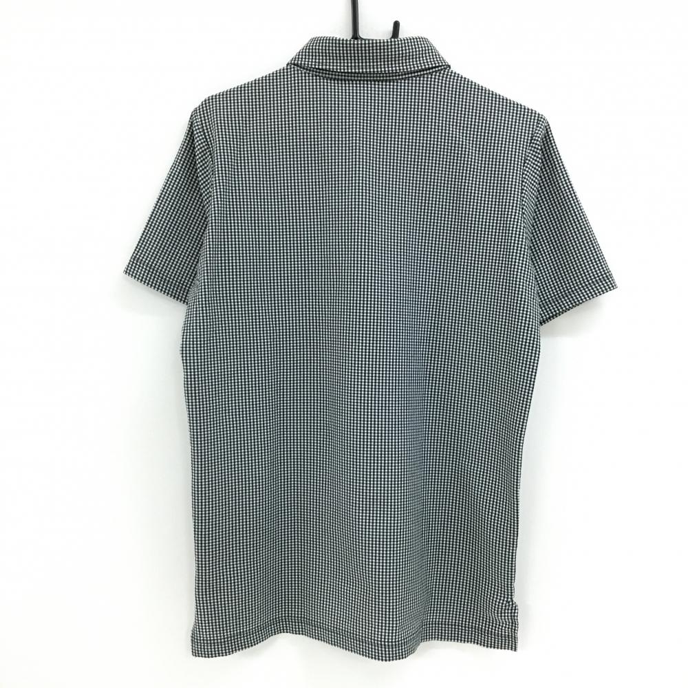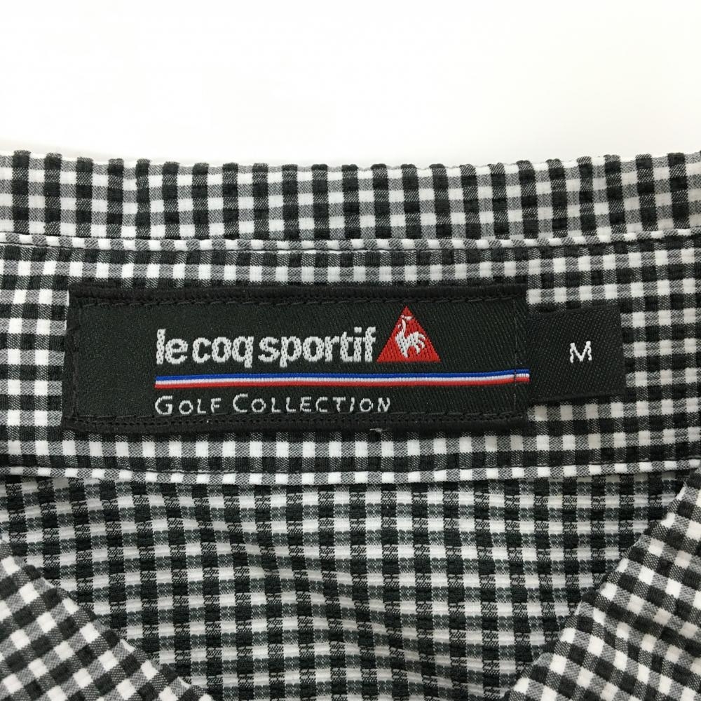 【超美品】ルコックゴルフ 半袖ポロシャツ 黒×白 チェック ボタンダウン サッカー生地 メンズ M ゴルフウェア le coq sportif