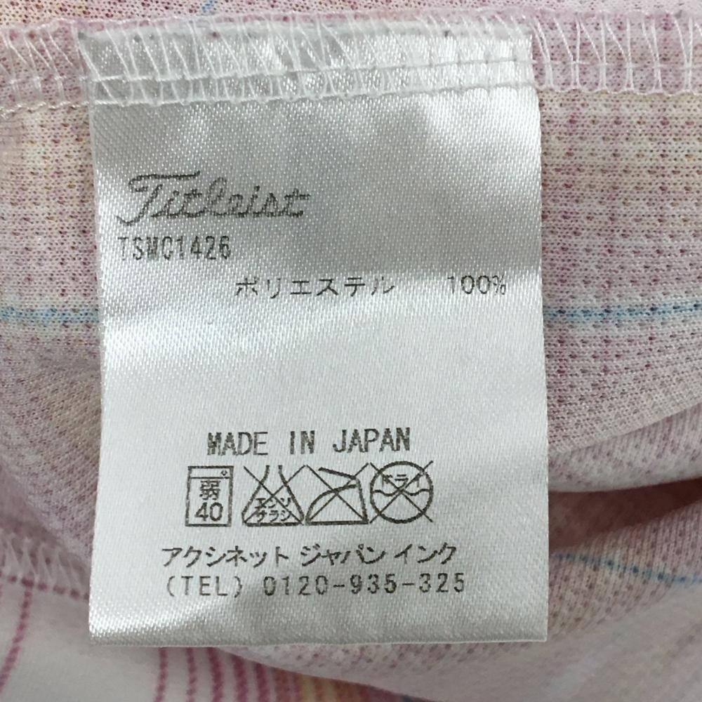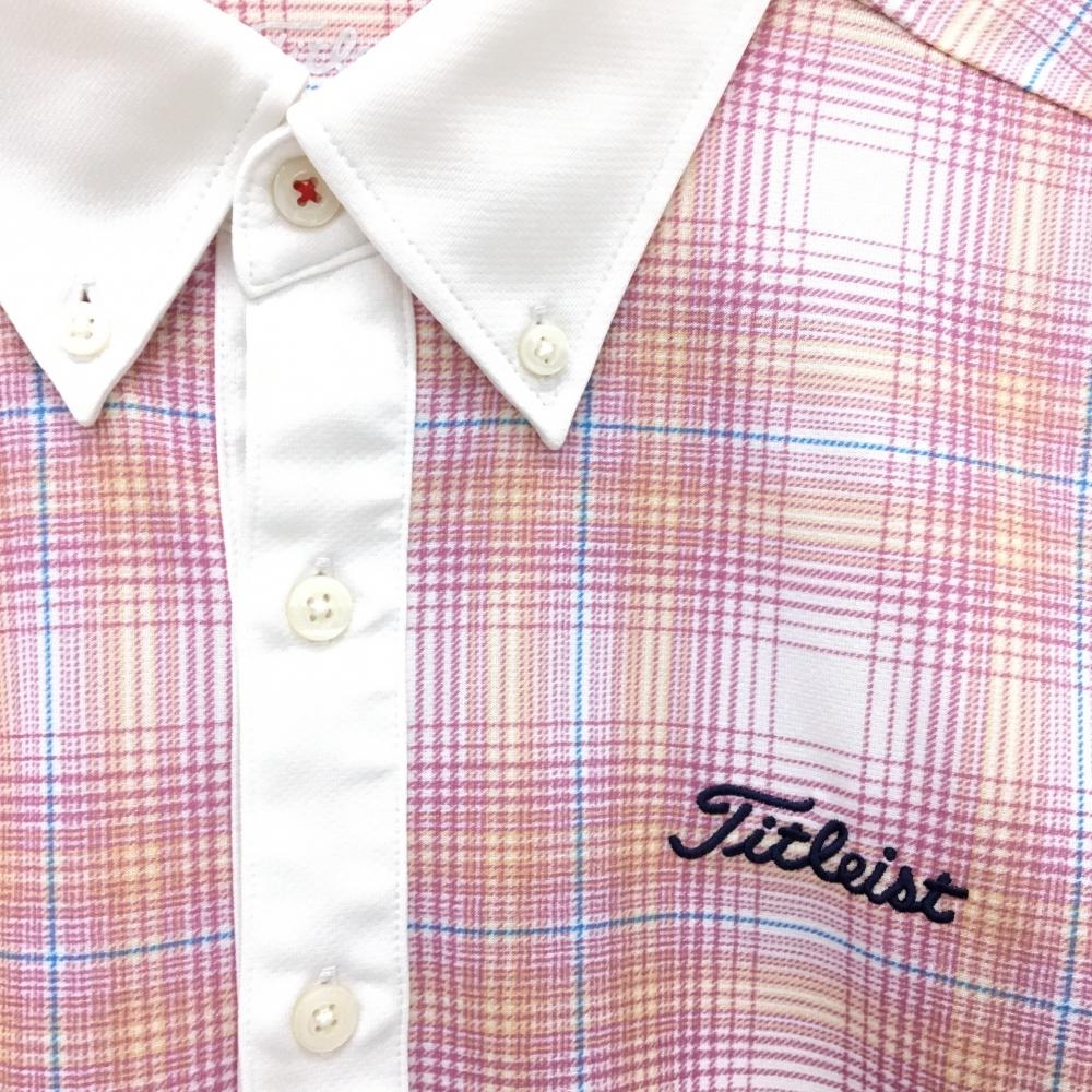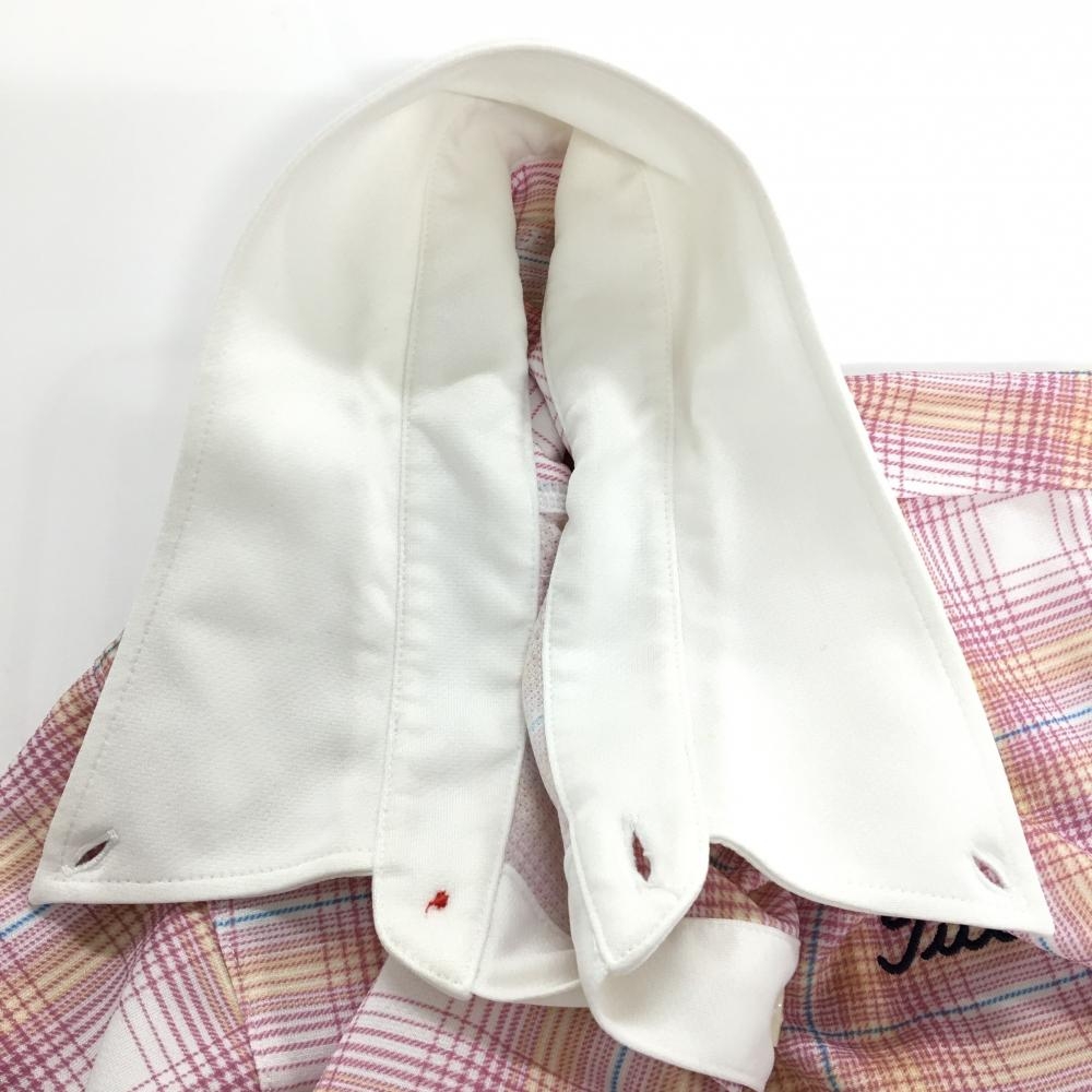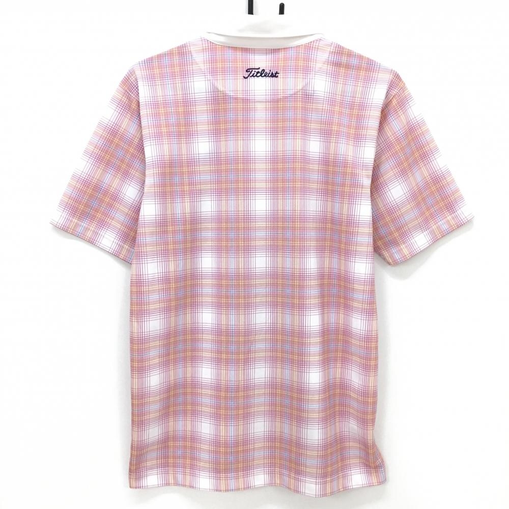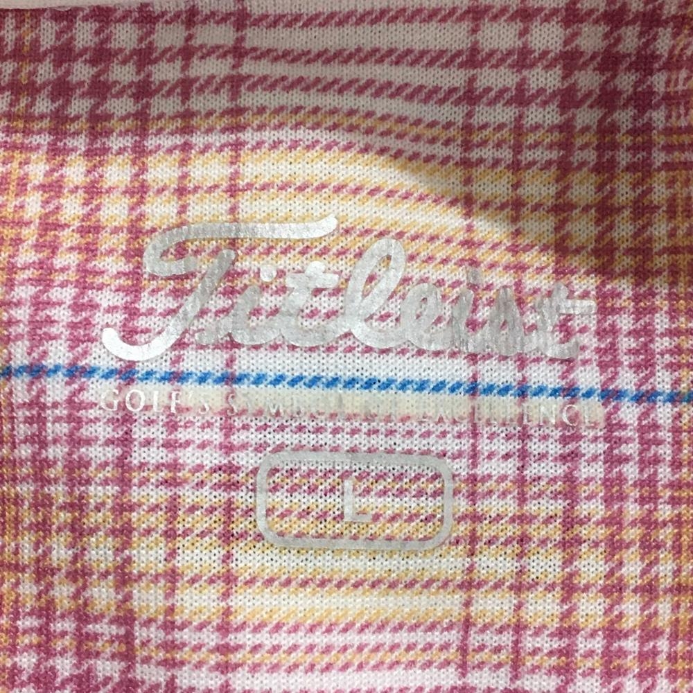 【美品】タイトリスト 半袖ポロシャツ 白×ピンク系×ブルー チェック ボタンダウン メンズ L ゴルフウェア TITLEIST