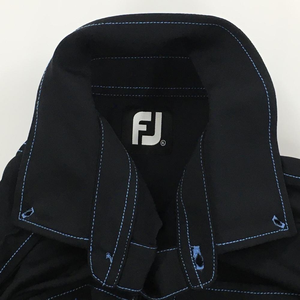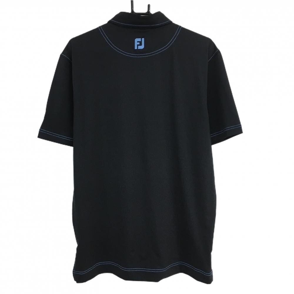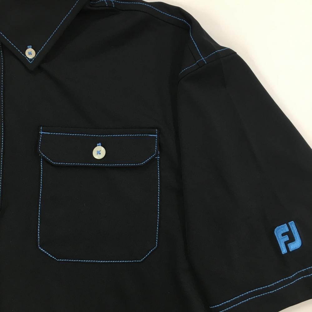 【美品】フットジョイ 半袖ポロシャツ 黒×ライトブルー 胸ポケット ボタンダウン ステッチ メンズ XL ゴルフウェア FootJoy