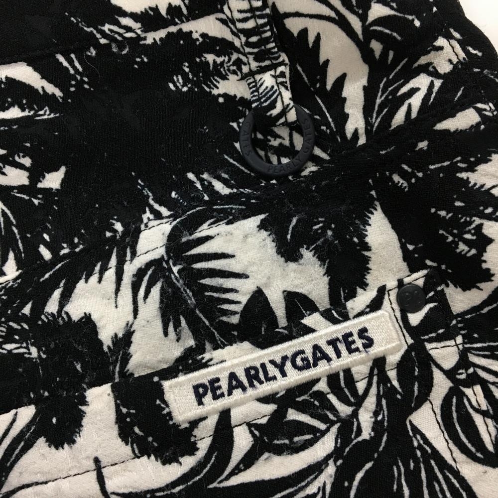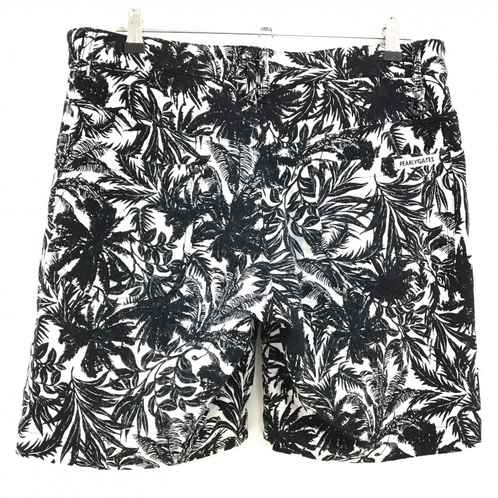 パーリーゲイツ ハーフパンツ 白×黒 リーフ柄 ストレッチ メンズ 5(L) ゴルフウェア PEARLY GATES