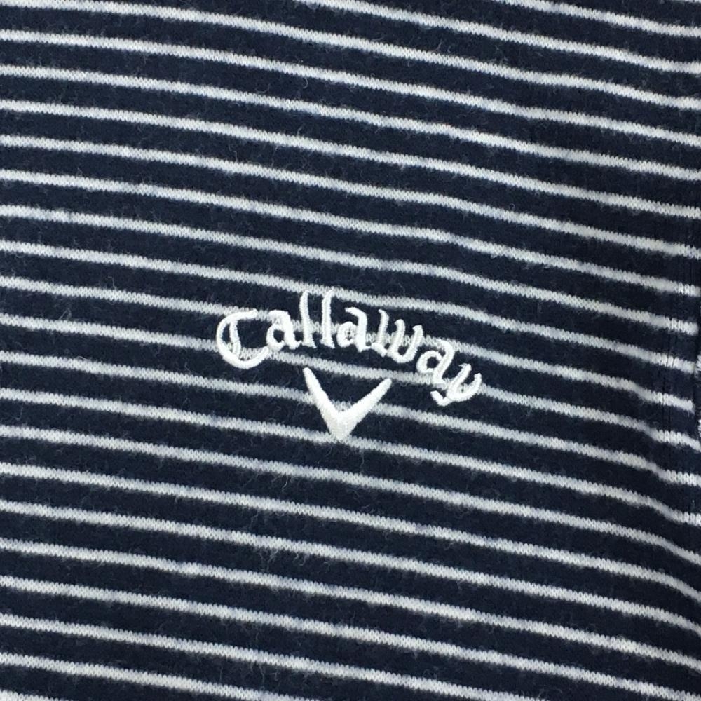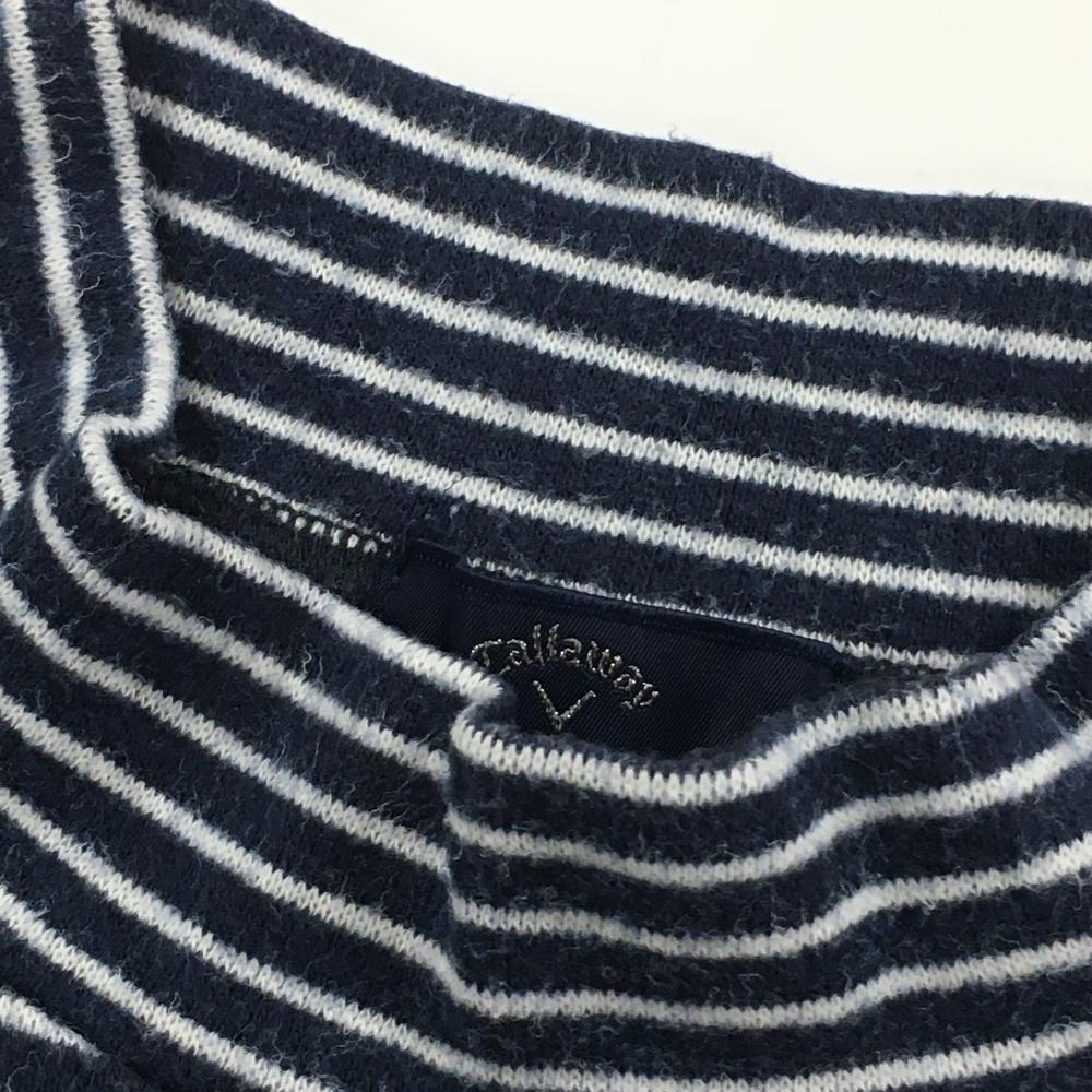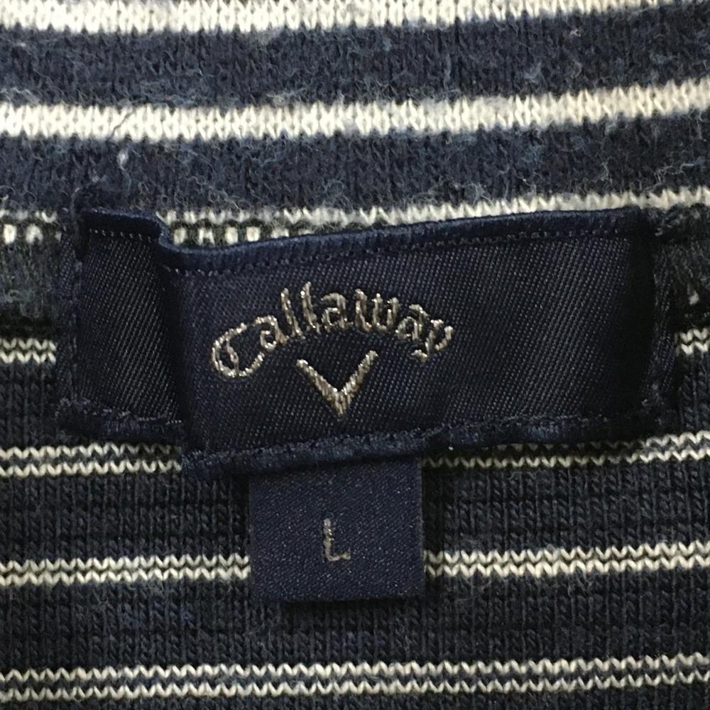 【美品】キャロウェイ 長袖ハイネックシャツ ネイビー×白 微起毛 メンズ L ゴルフウェア Callaway