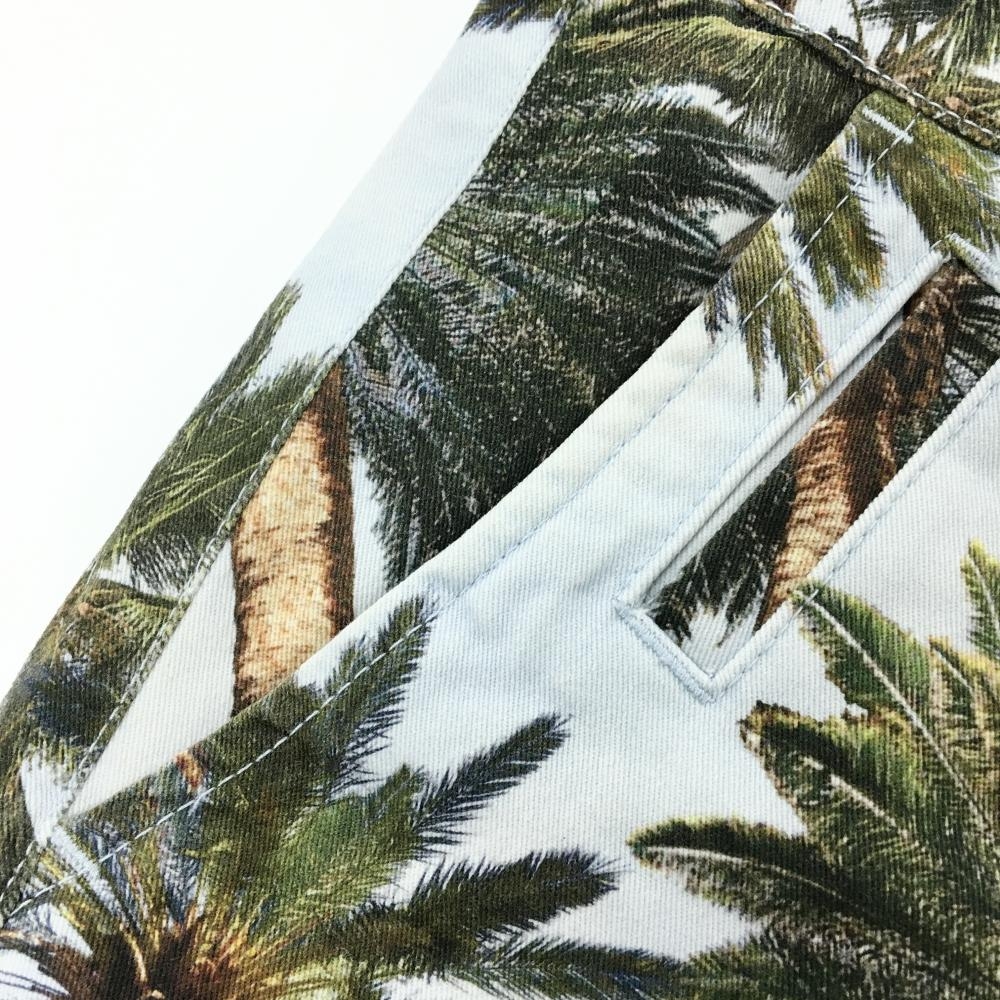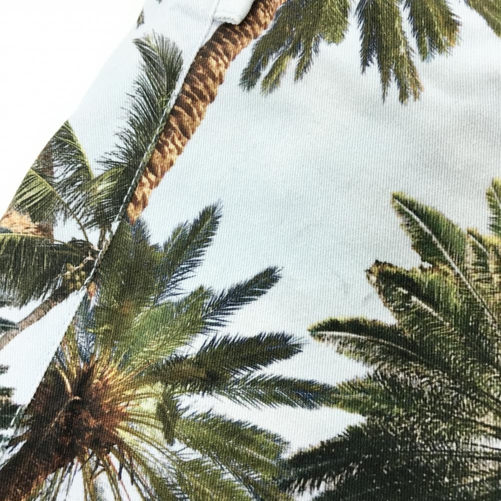 【美品】ジャックバニー ハーフパンツ ライトブルー×グリーン ヤシの木総柄 メンズ 4(M) ゴルフウェア Jack Bunny
