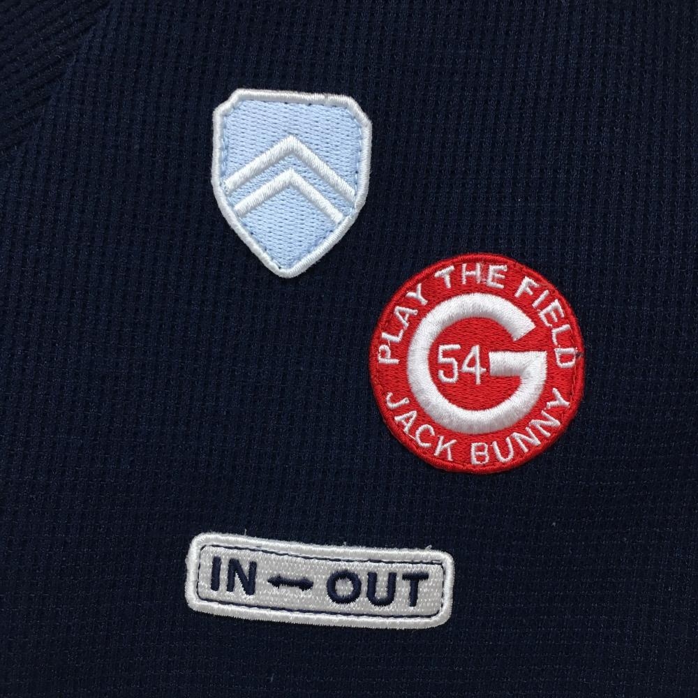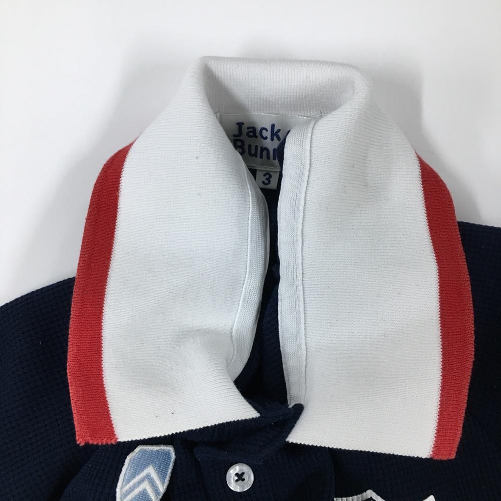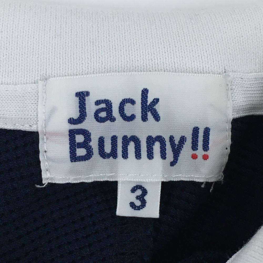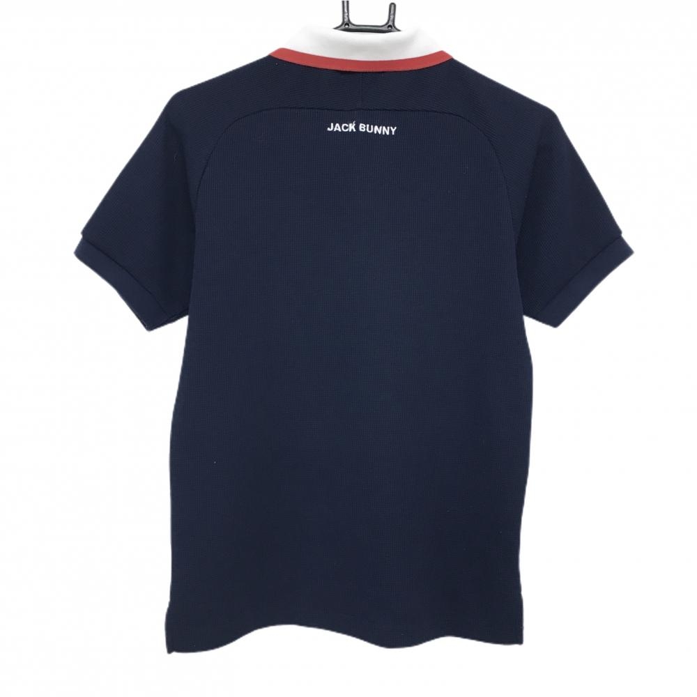 ジャックバニー 半袖ポロシャツ ネイビー×白 ワッフル調生地 複数ワッペン メンズ 3(S) ゴルフウェア Jack Bunny