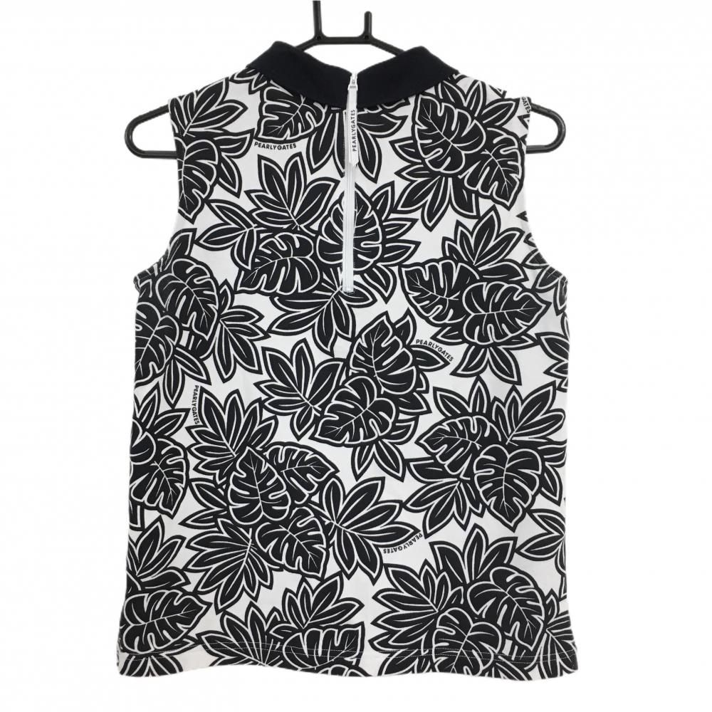 パーリーゲイツ ノースリーブシャツ 白×黒 リーフ柄 レディース 1(M) ゴルフウェア PEARLY GATES
