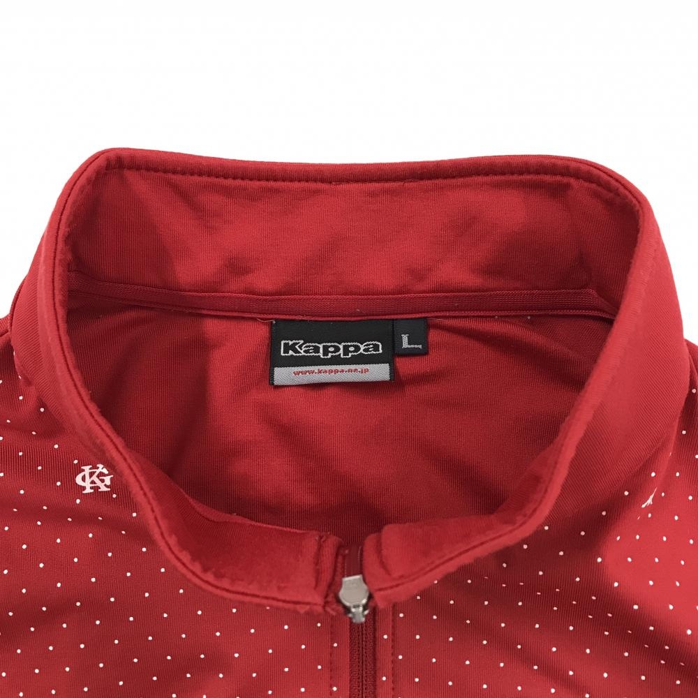 【美品】カッパ 長袖ハイネックシャツ レッド×白 前身頃ドット ハーフジップ メンズ L ゴルフウェア Kappa