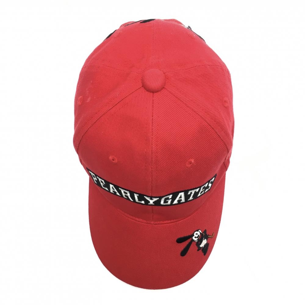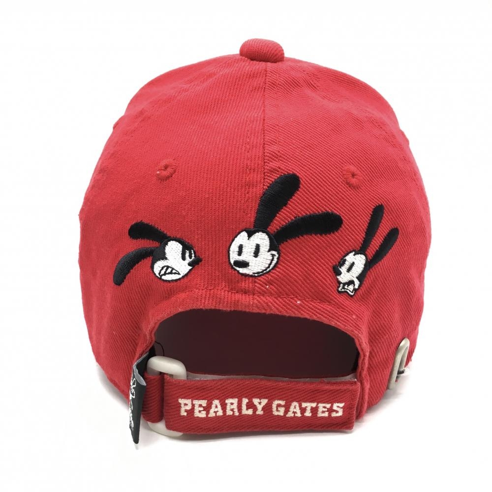 【美品】パーリーゲイツ×ディズニー キャップ レッド×黒 ロゴ OSWALD FR ゴルフウェア PEARLY GATES