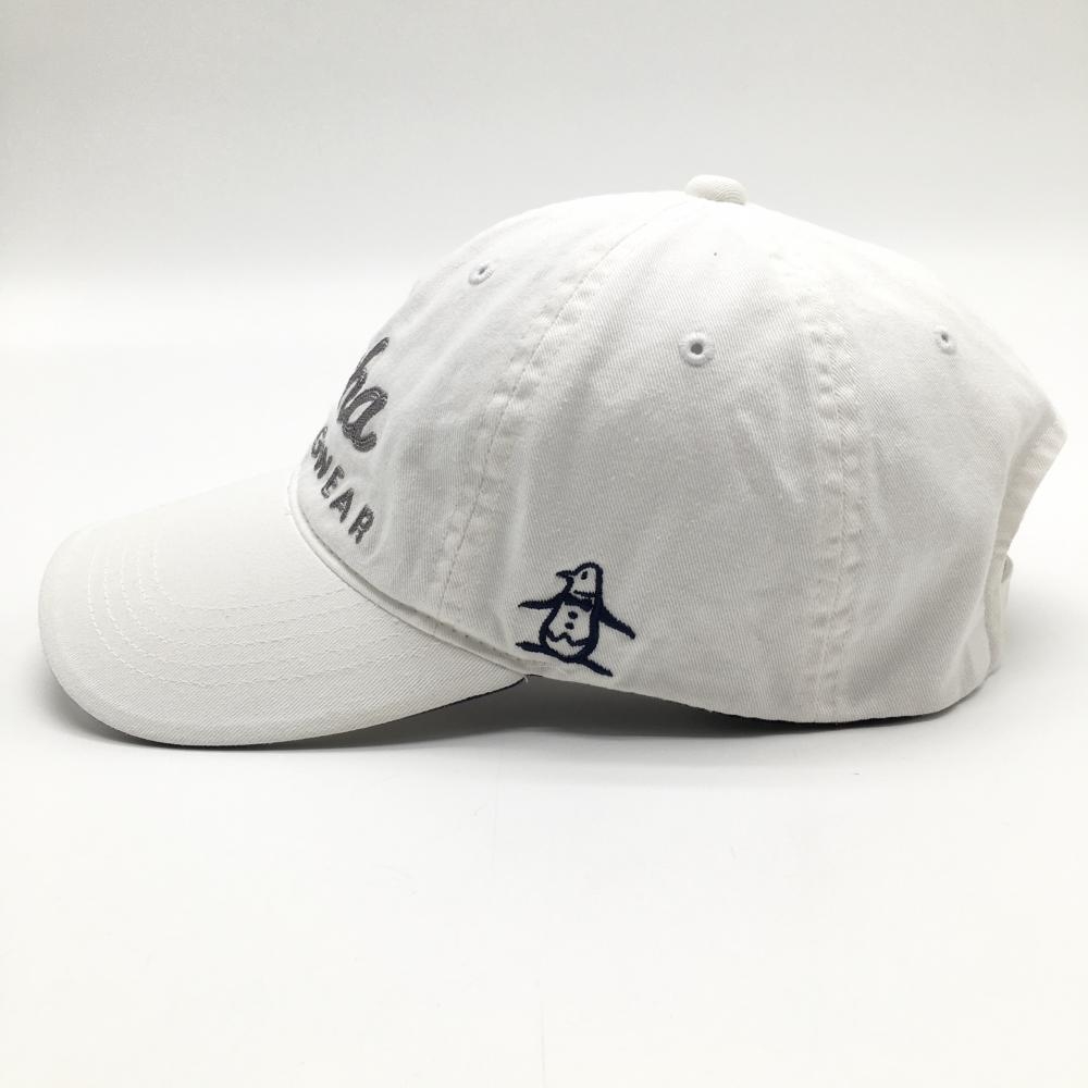 【美品】マンシングウェア キャップ 白×グレー サイドロゴ刺しゅう 後薄汚れ F(56-60cm) ゴルフウェア Munsingwear