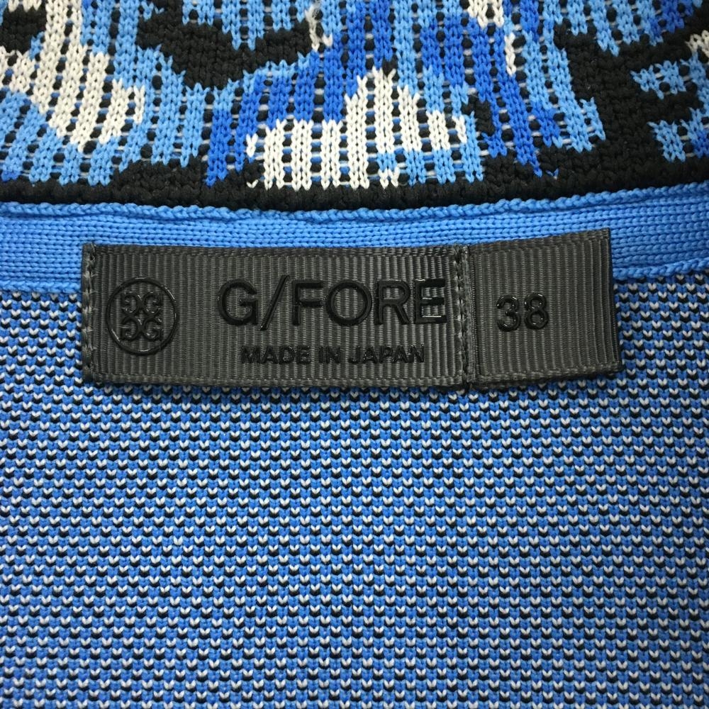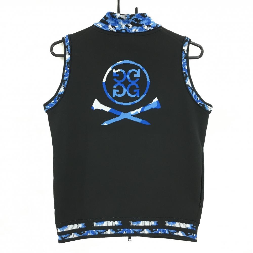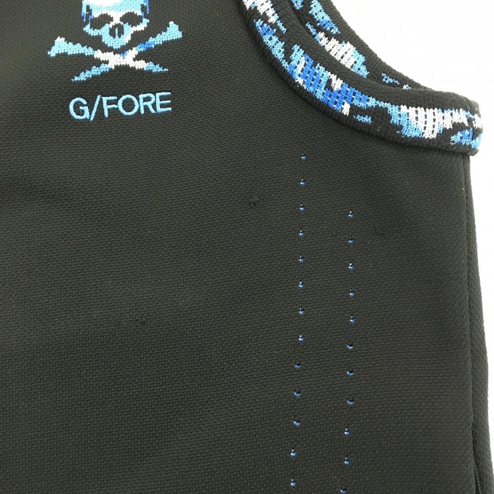 ジーフォア ニットジップベスト 黒×ブルー スカル レディース 38(M) ゴルフウェア G/FORE
