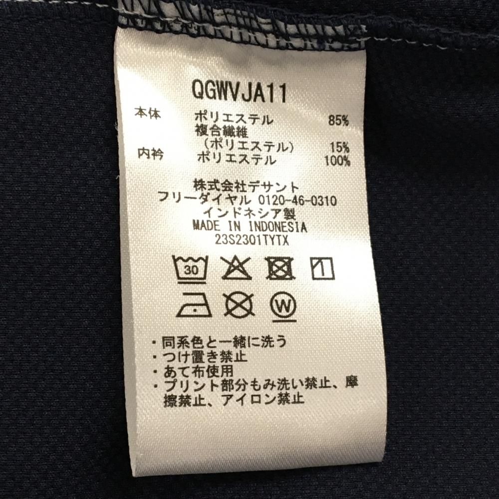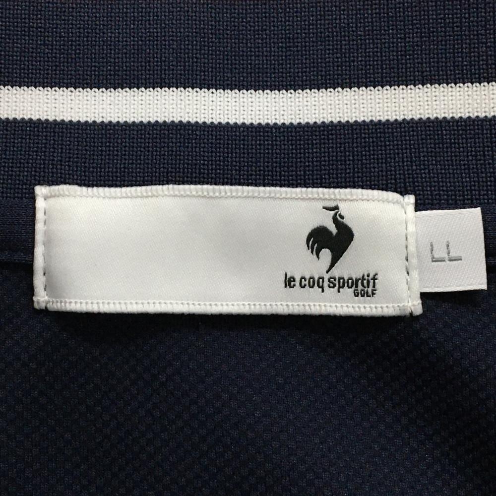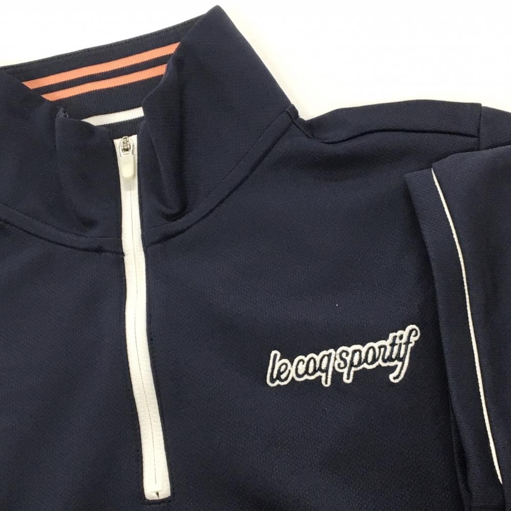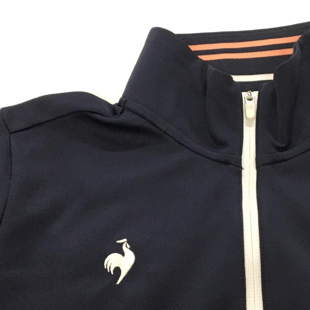 【超美品】ルコックゴルフ 半袖ハイネックシャツ ネイビー×白 ハーフジップ ロゴ刺しゅう レディース LL ゴルフウェア le coq sportif