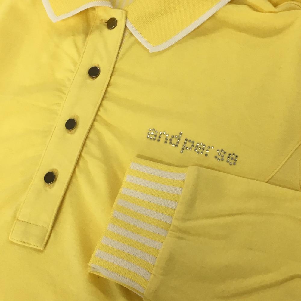 【美品】アンパスィ 長袖ポロシャツ ライトイエロー 胸ロゴラインストーン レディース L ゴルフウェア and per se